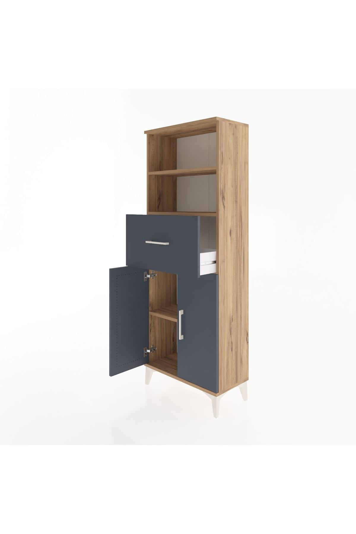 Arges Dolap 3 Raflı Tek Çekmeceli 2 Kapaklı 60x30x163 Çam-Antrasit