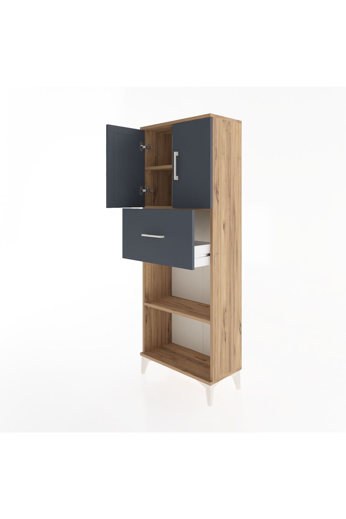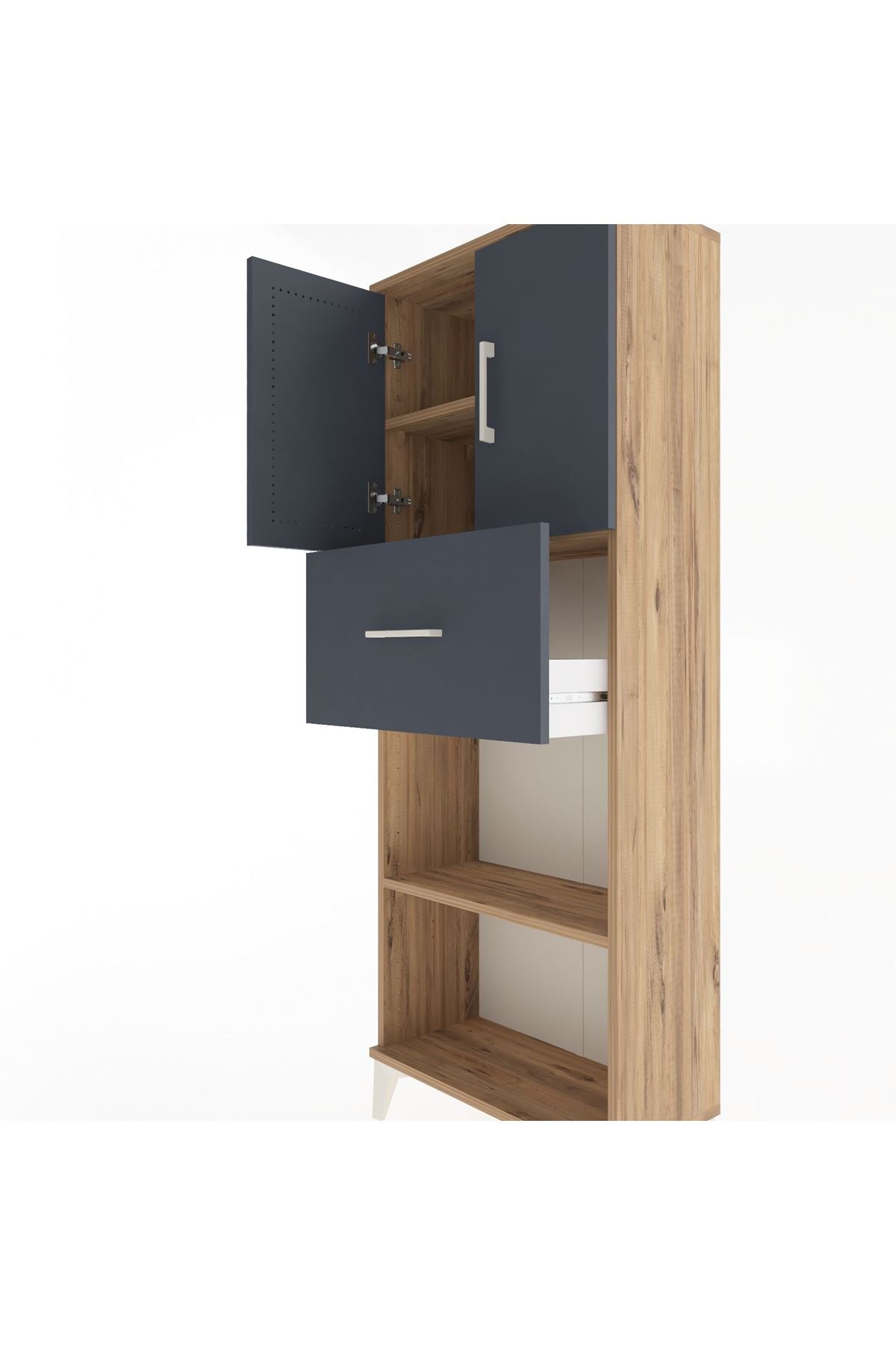 Arges Dolap 3 Raflı Tek Çekmeceli 2 Kapaklı 60x30x163 Çam-Antrasit