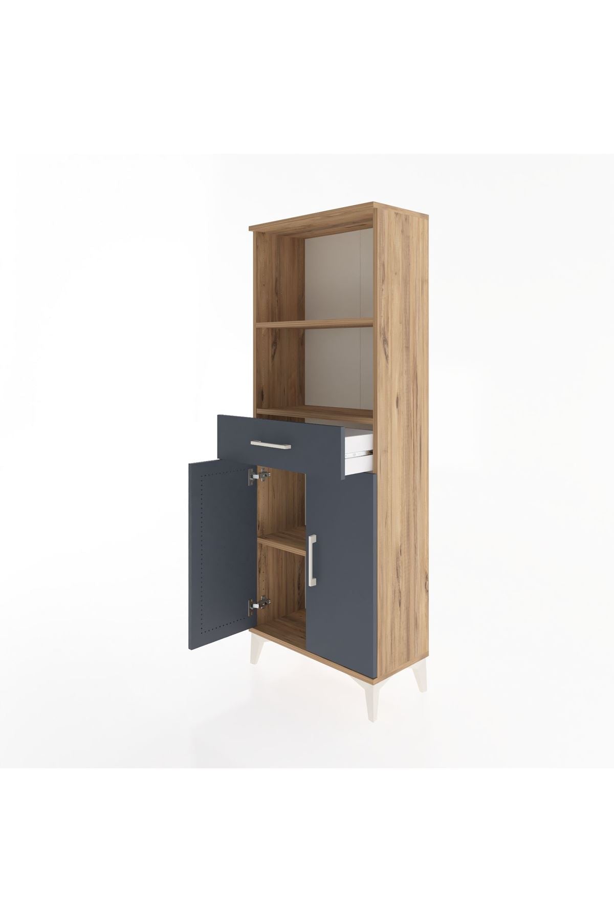 Arges Dolap 3 Raflı Tek Çekmeceli 2 Kapaklı 60x30x163 Çam-Antrasit