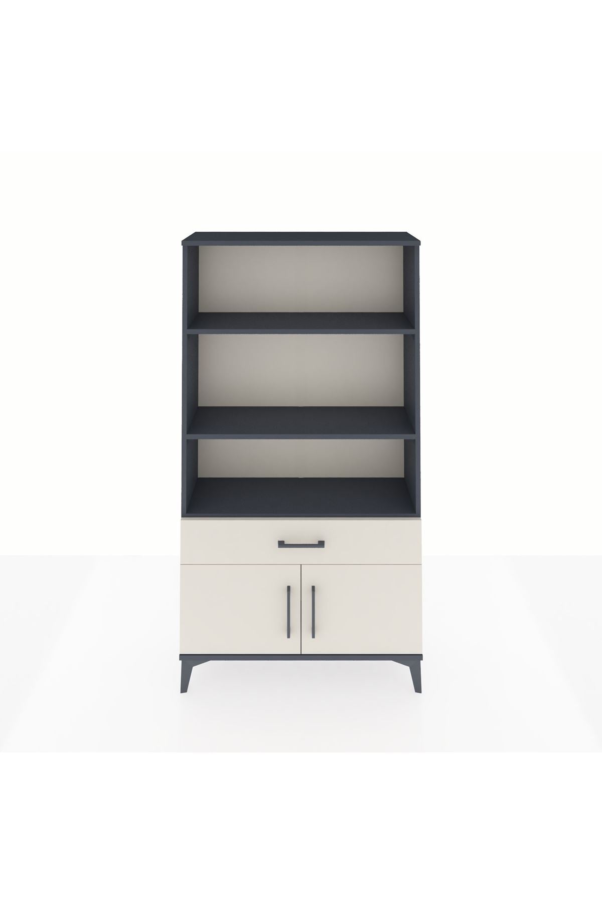Arges Dolap 3 Raflı Tek Çekmeceli 2 Kapaklı 88x30x163 Antrasit-Aytaşı