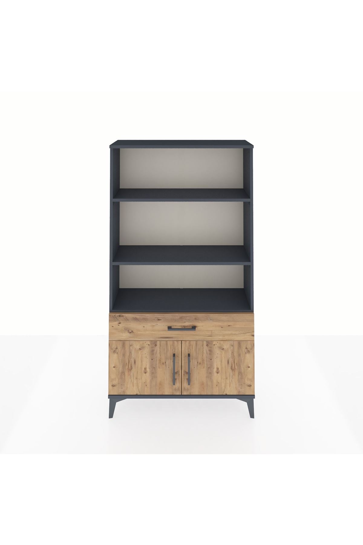 Arges Dolap 3 Raflı Tek Çekmeceli 2 Kapaklı 88x30x163 Antrasit-Çam