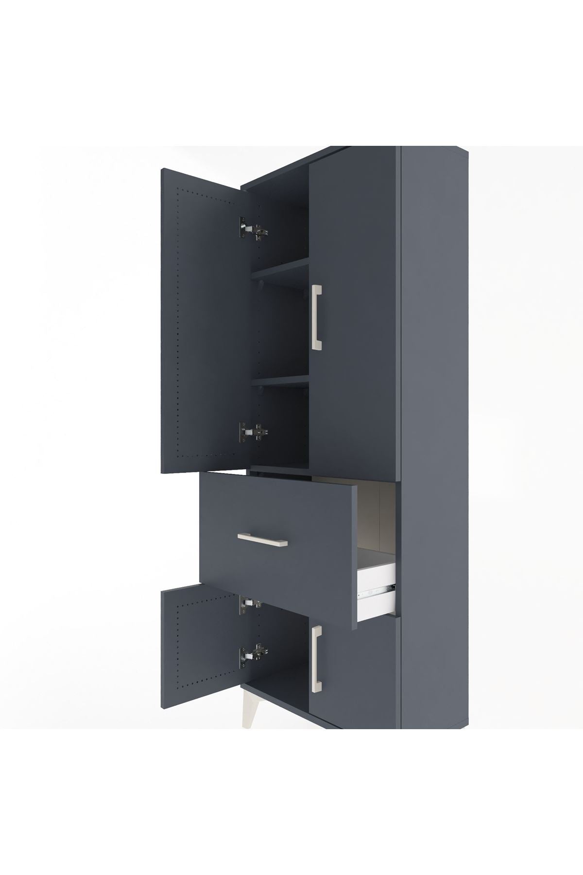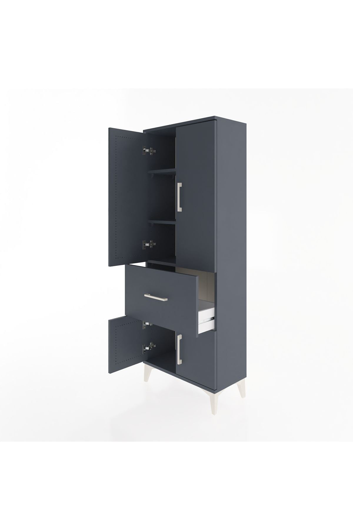 Arges Dolap 3 Raflı Tek Çekmeceli 4 Kapaklı 60x30x163 Antrasit-Antrasit