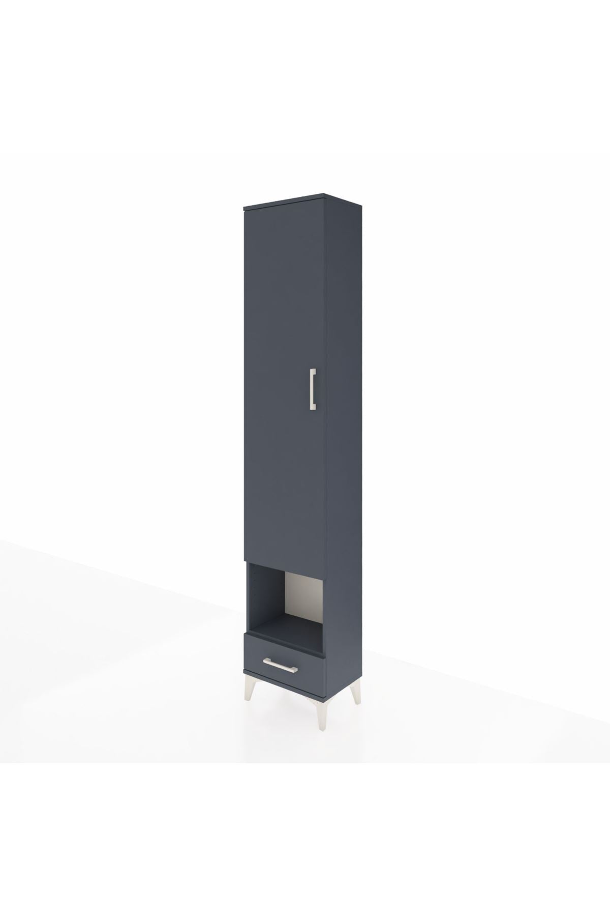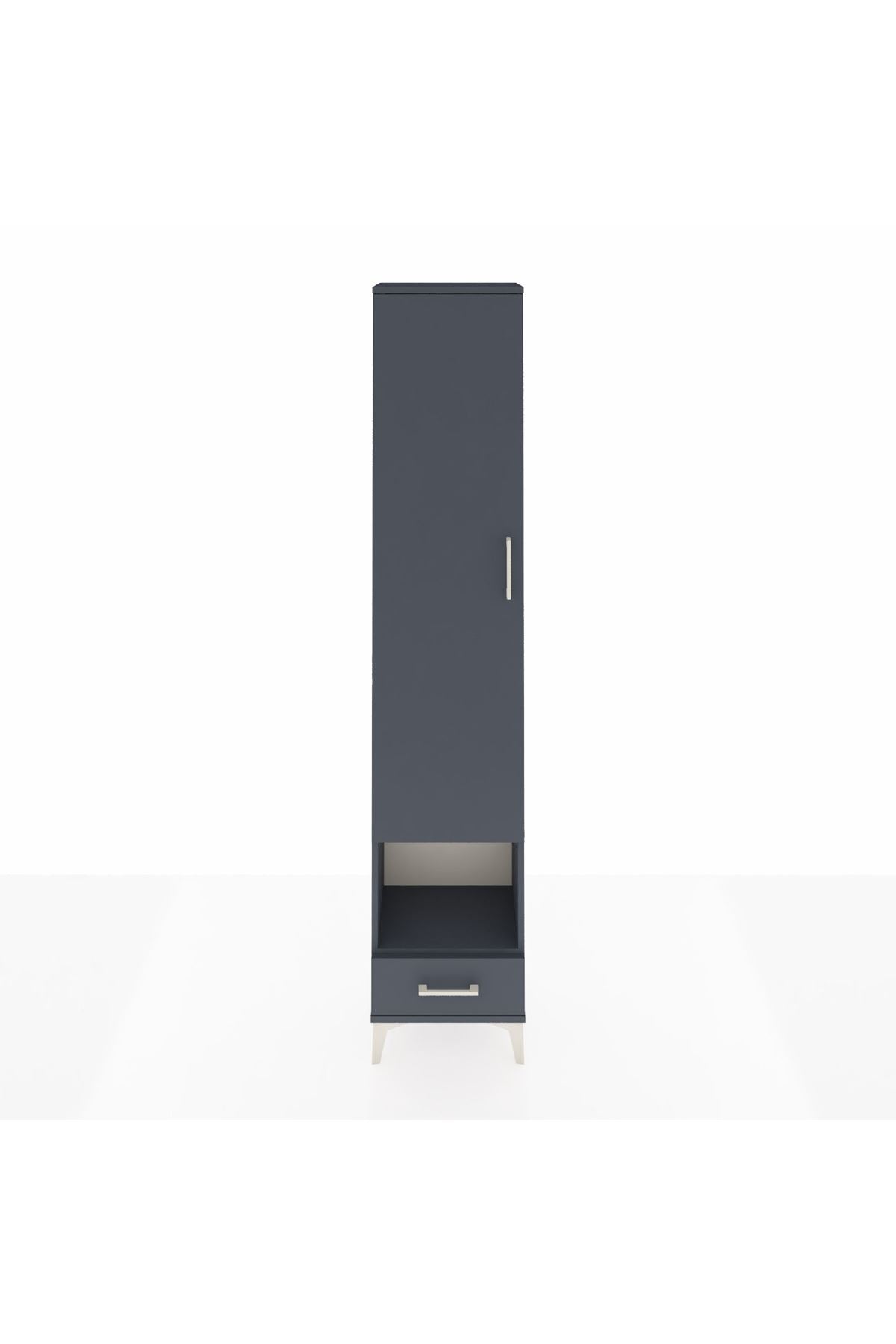 Arges Dolap 3 Raflı Tek Çekmeceli Tek Askılı 44x30x221 Antrasit-Antrasit