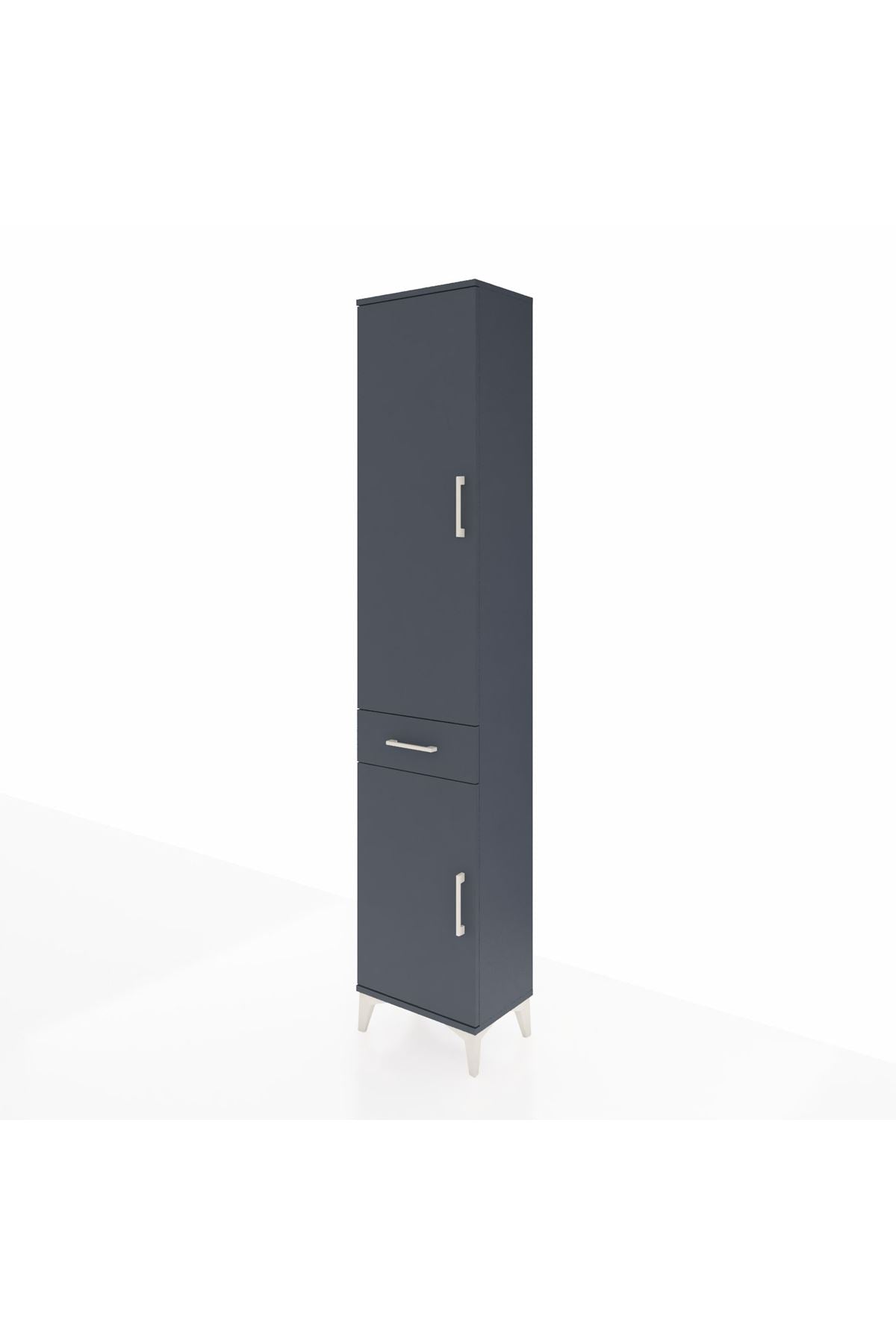 Arges Dolap 3 Raflı Tek Çekmeceli Tek Askılı 44x30x221 Antrasit-Antrasit
