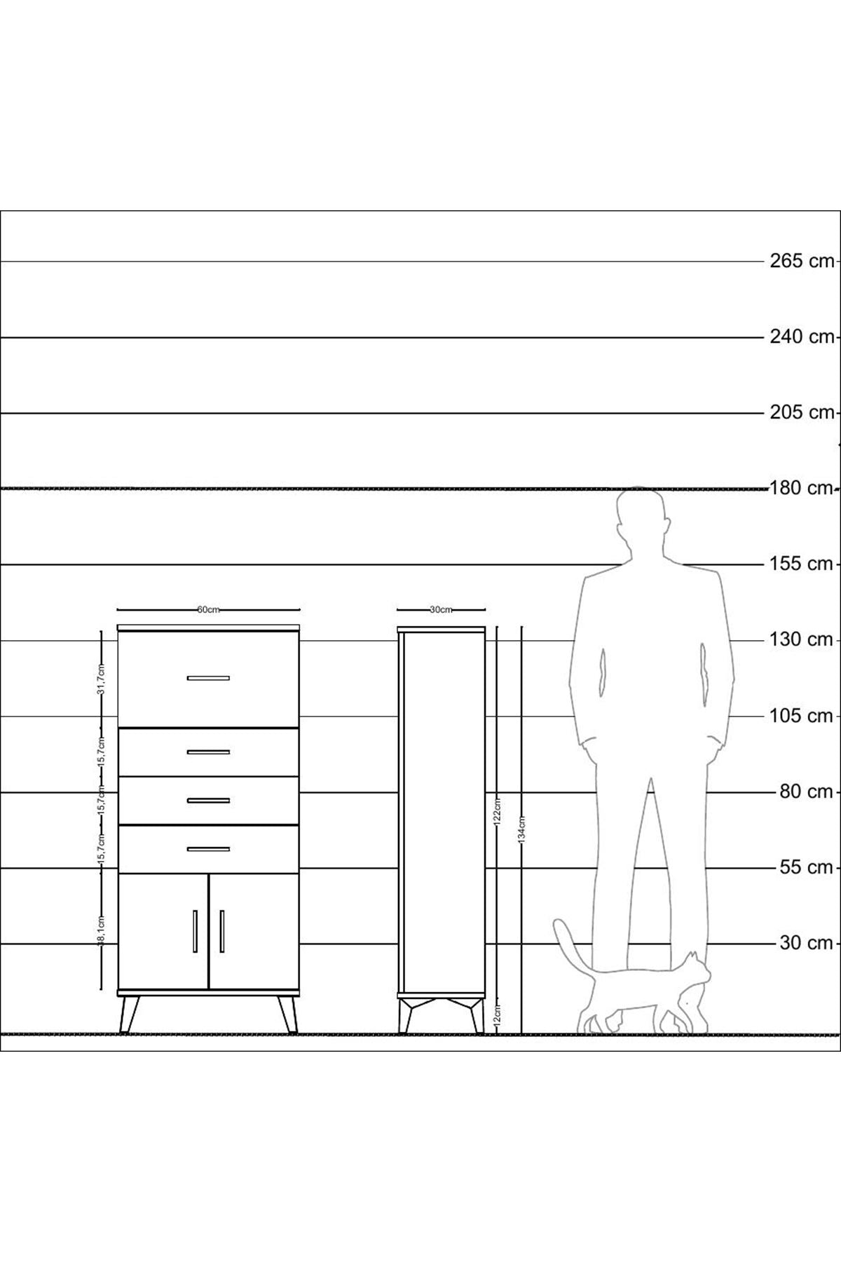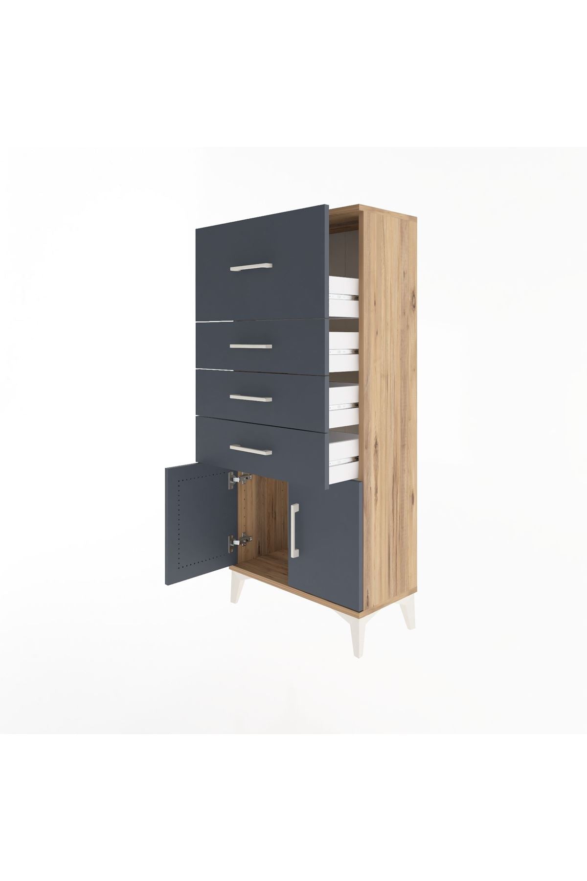 Arges Dolap 4 Çekmeceli 2 Kapaklı 60x30x134 Çam-Antrasit