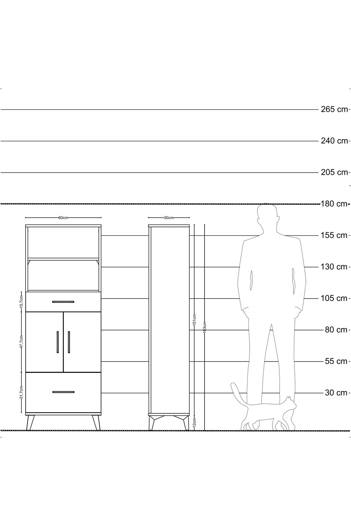 Arges Dolap 4 Raflı 2 Çekmeceli 2 Kapaklı 60x30x163 Antrasit-Antrasit