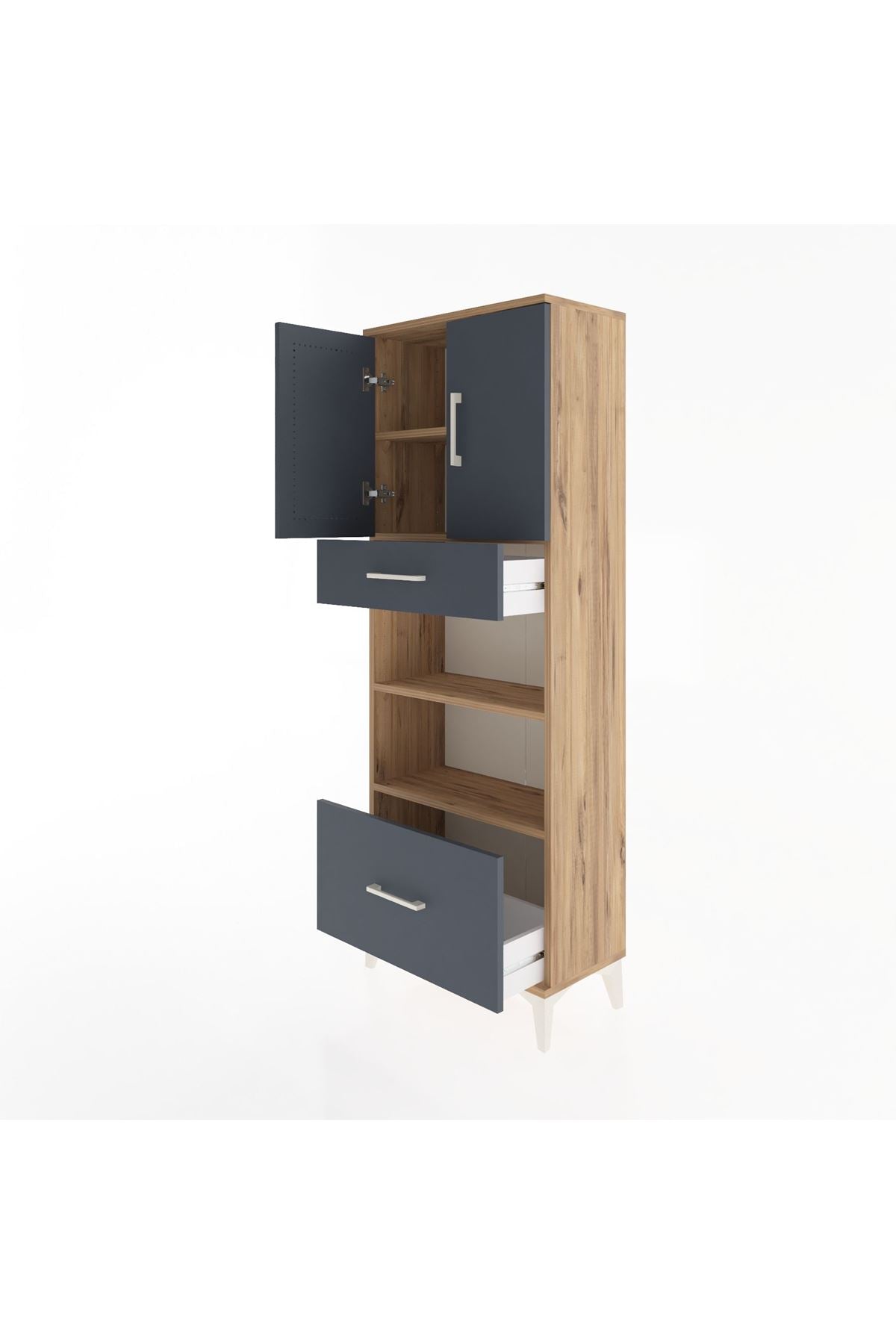 Arges Dolap 4 Raflı 2 Çekmeceli 2 Kapaklı 60x30x163 Çam-Antrasit