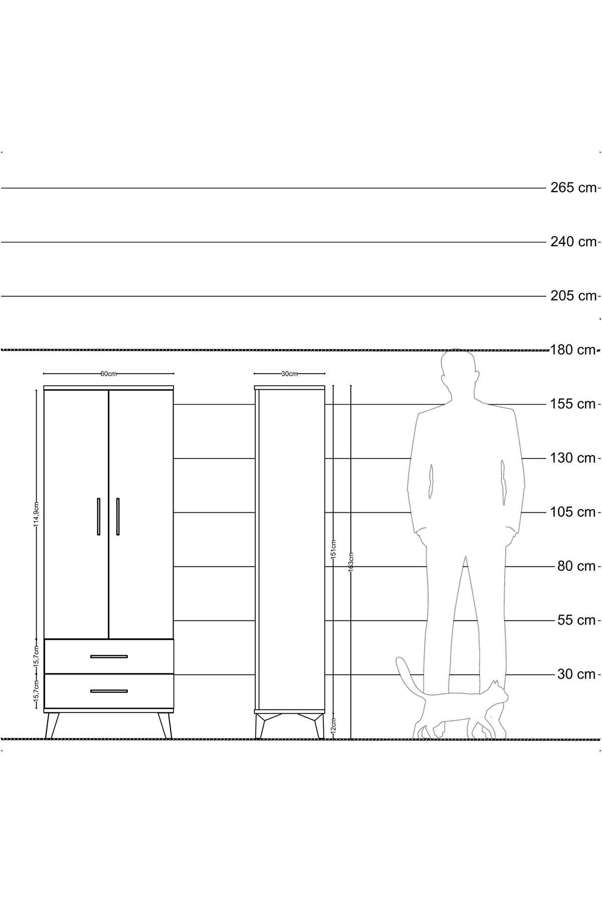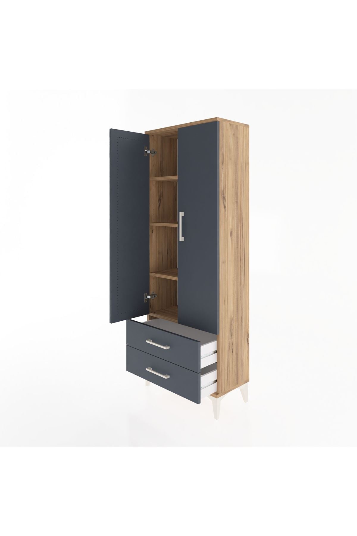 Arges Dolap 4 Raflı 2 Çekmeceli 2 Kapaklı 60x30x163 Çam-Antrasit