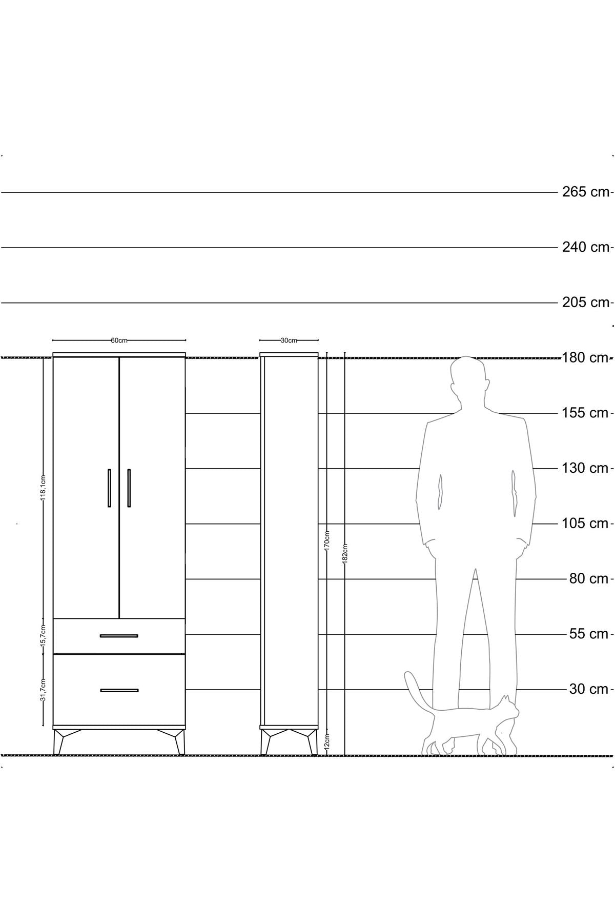 Arges Dolap 4 Raflı 2 Çekmeceli 2 Kapaklı 60x30x182 Antrasit-Aytaşı