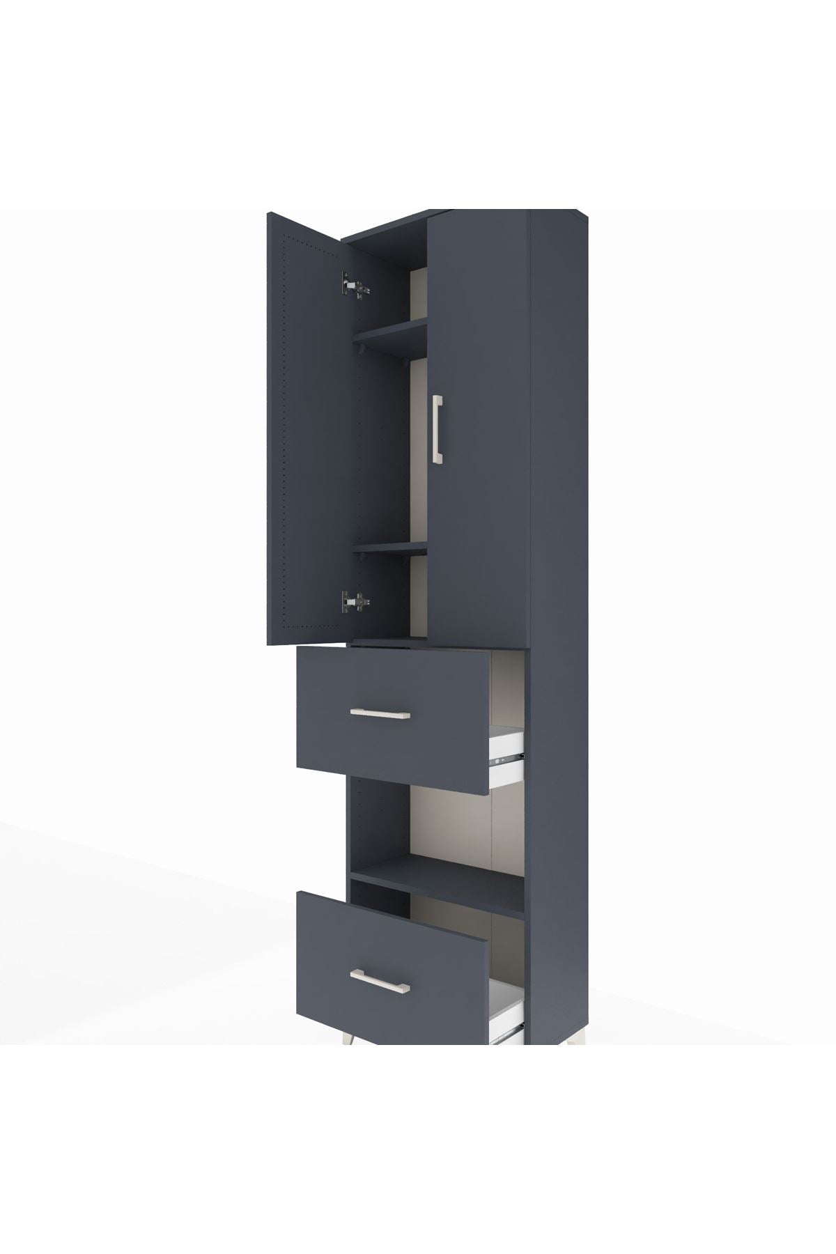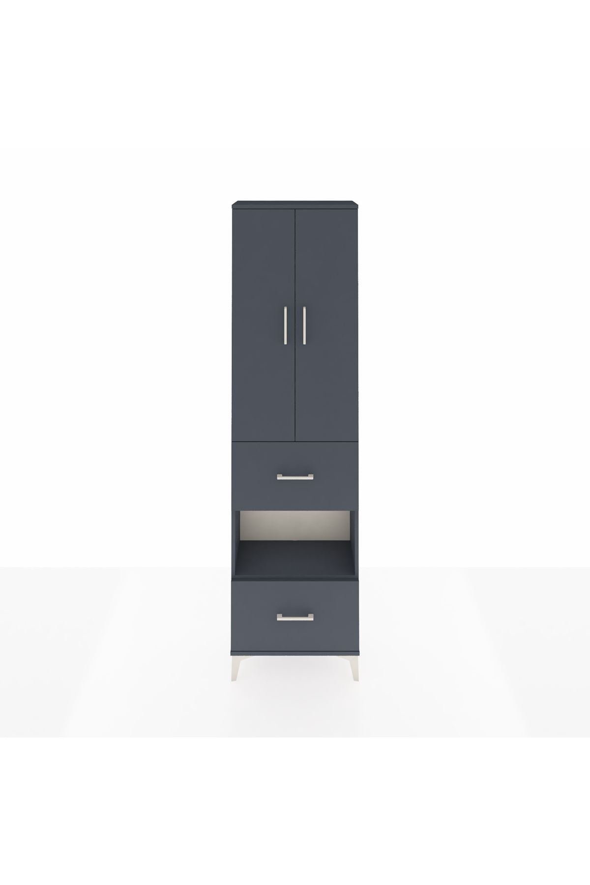 Arges Dolap 4 Raflı 2 Çekmeceli 2 Kapaklı 60x30x221 Antrasit-Antrasit