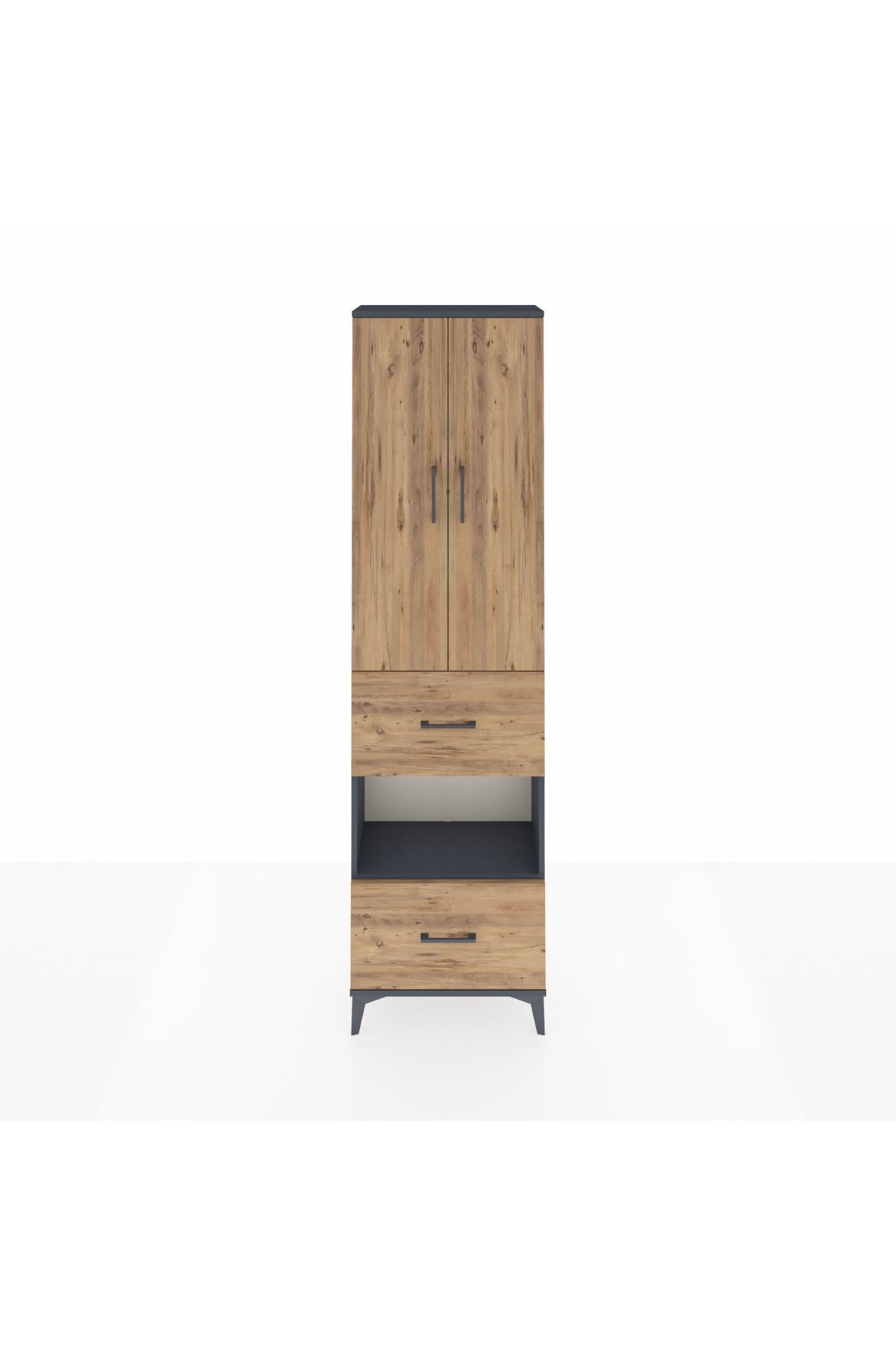 Arges Dolap 4 Raflı 2 Çekmeceli 2 Kapaklı 60x30x221 Antrasit-Çam