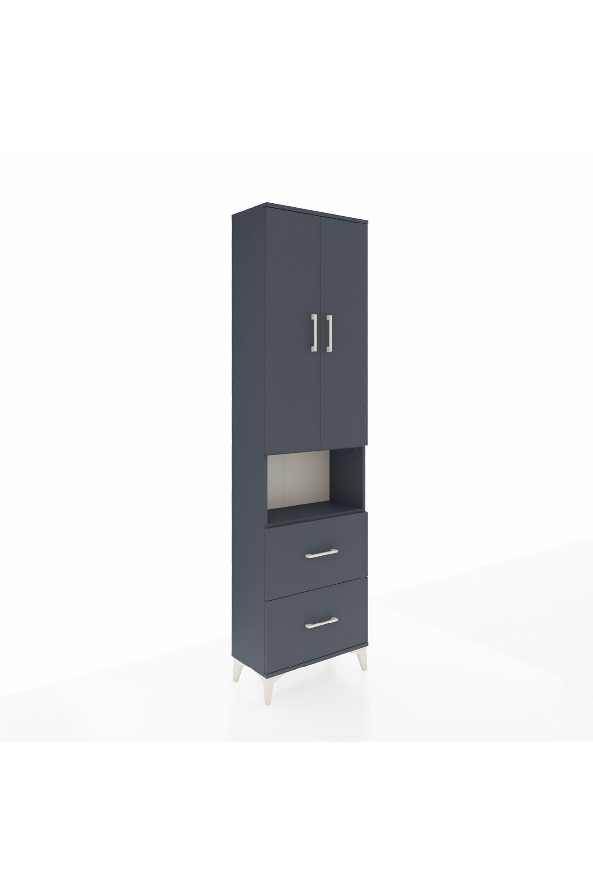 Arges Dolap 4 Raflı 2 Çekmeceli 2 Kapaklı 60x30x221 Antrasit-Antrasit