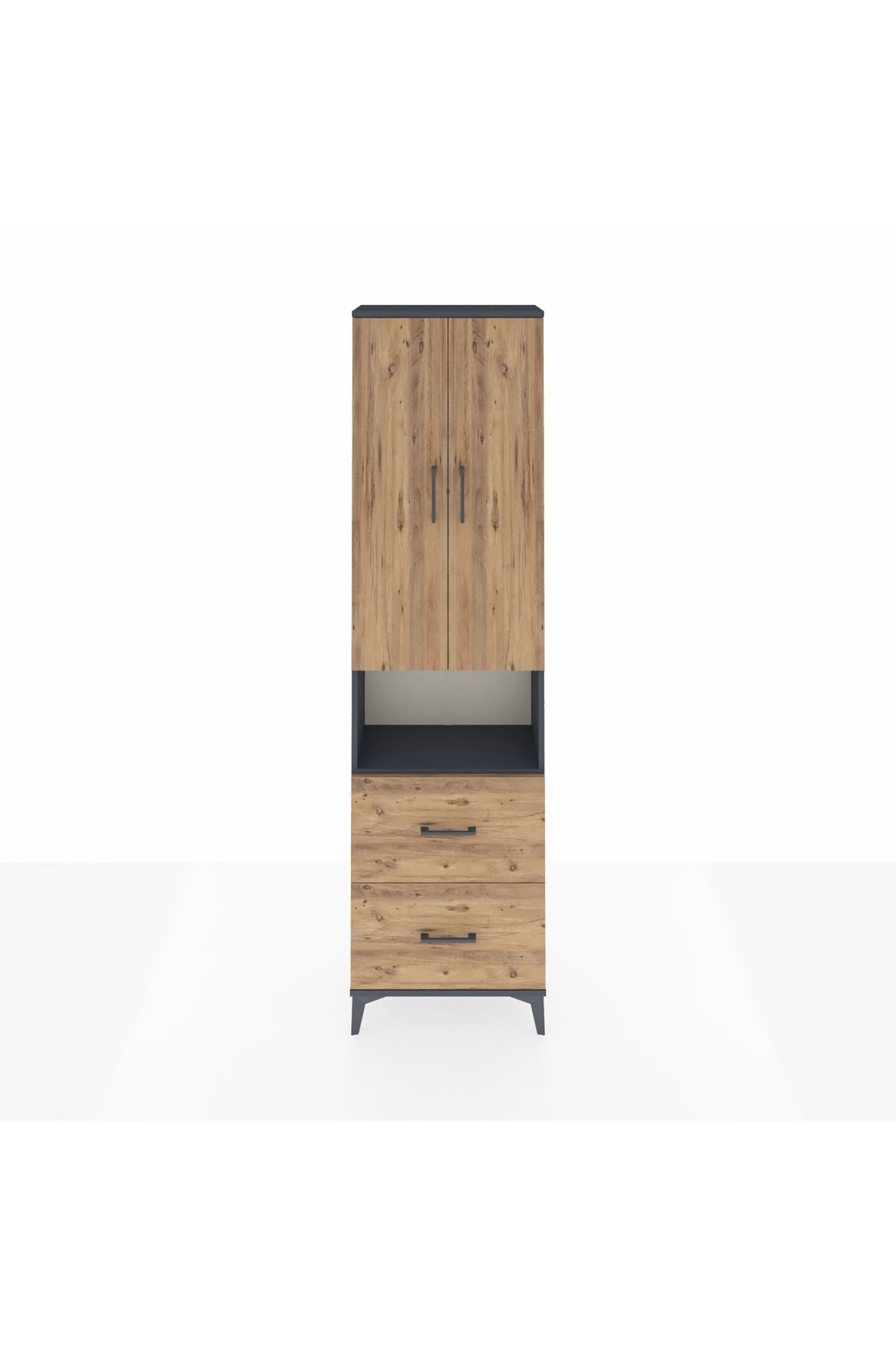 Arges Dolap 4 Raflı 2 Çekmeceli 2 Kapaklı 60x30x221 Antrasit-Çam