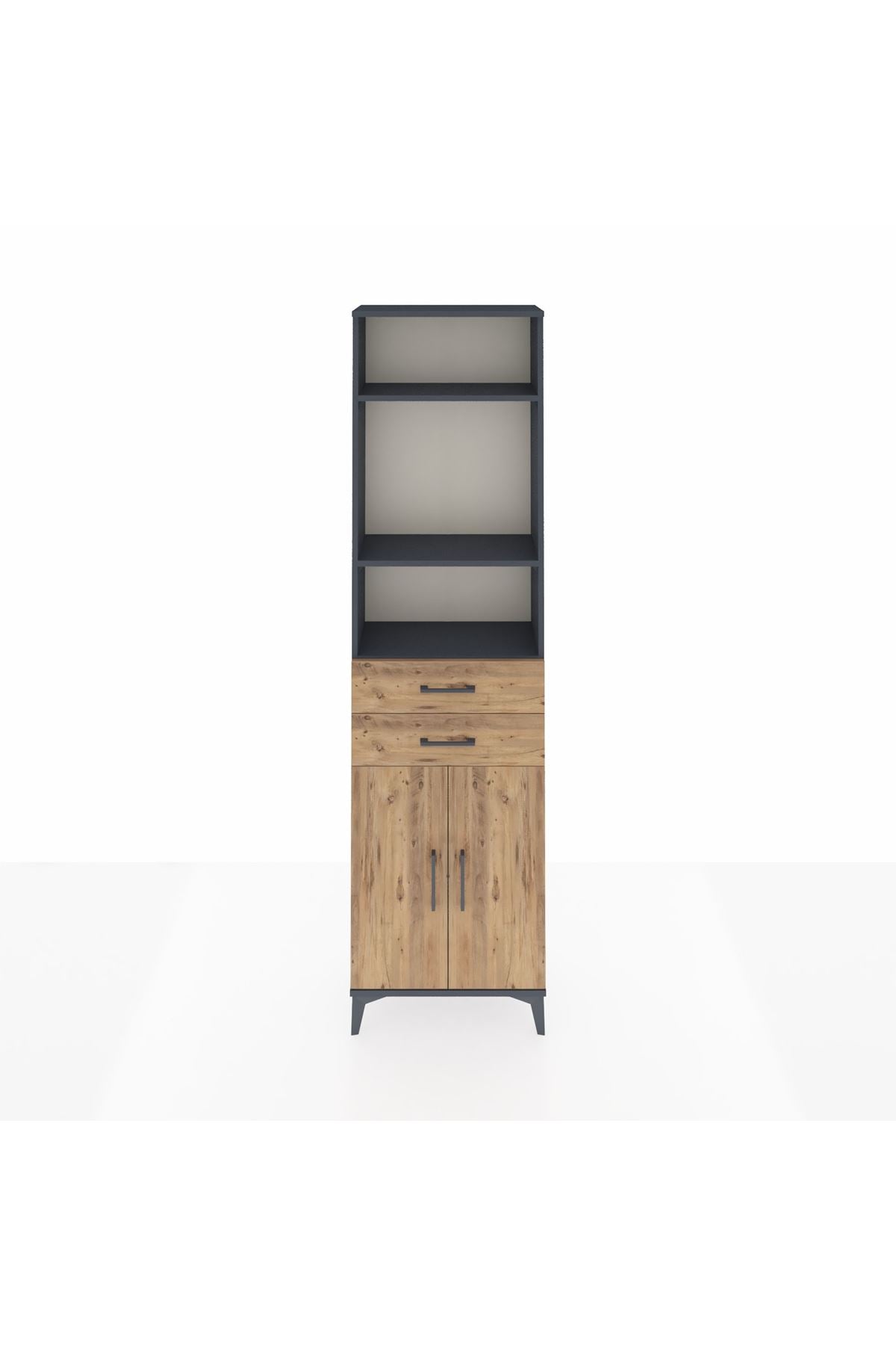 Arges Dolap 4 Raflı 2 Çekmeceli 2 Kapaklı 60x30x221 Antrasit-Çam