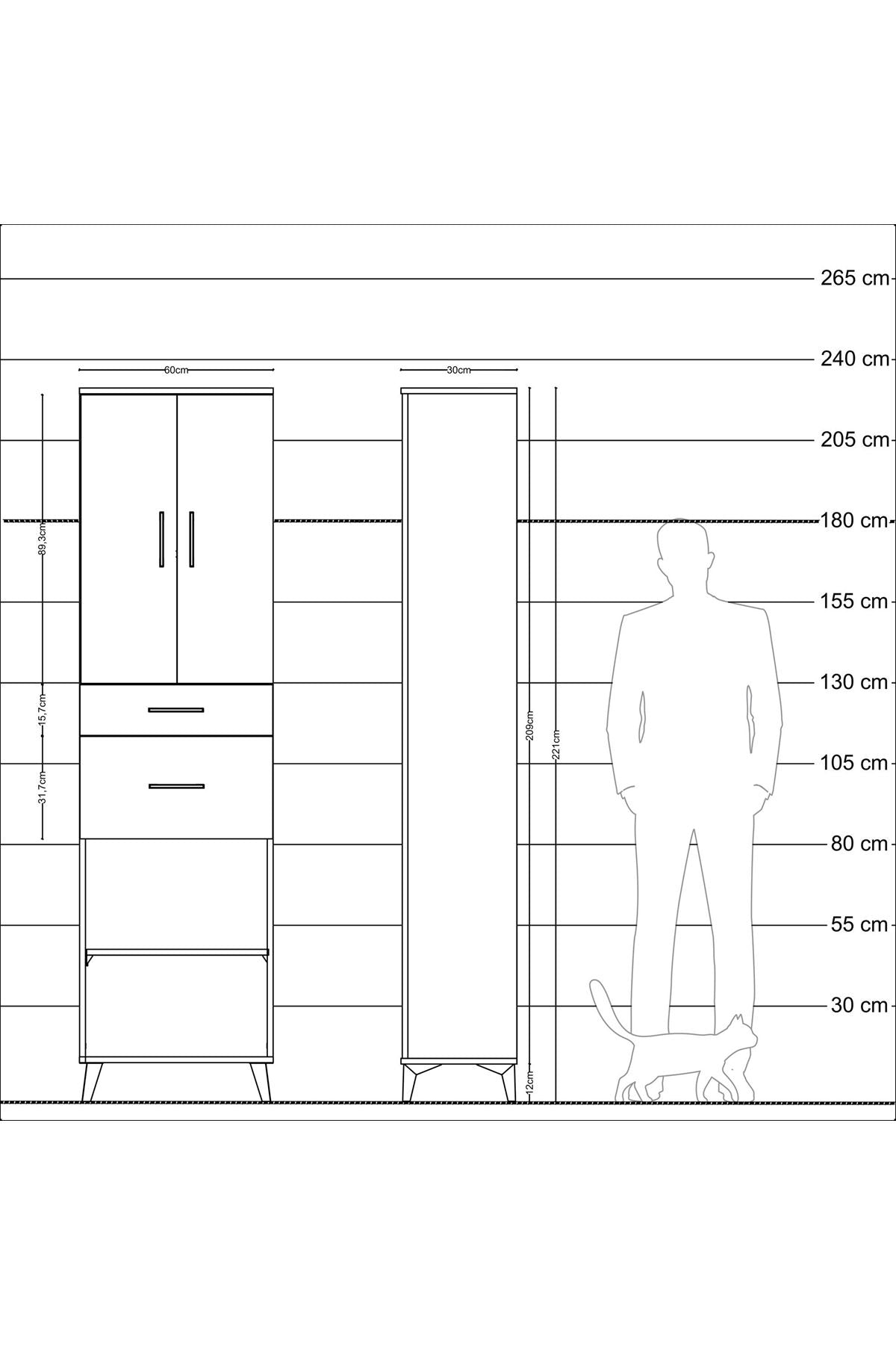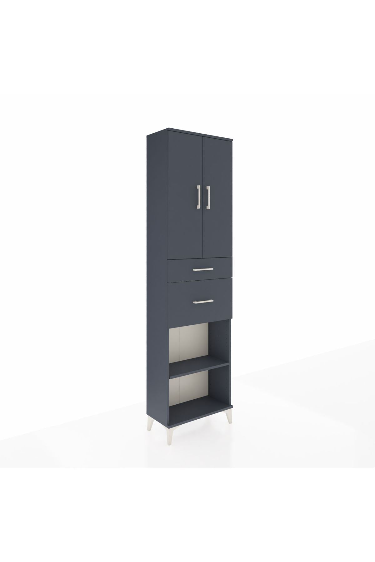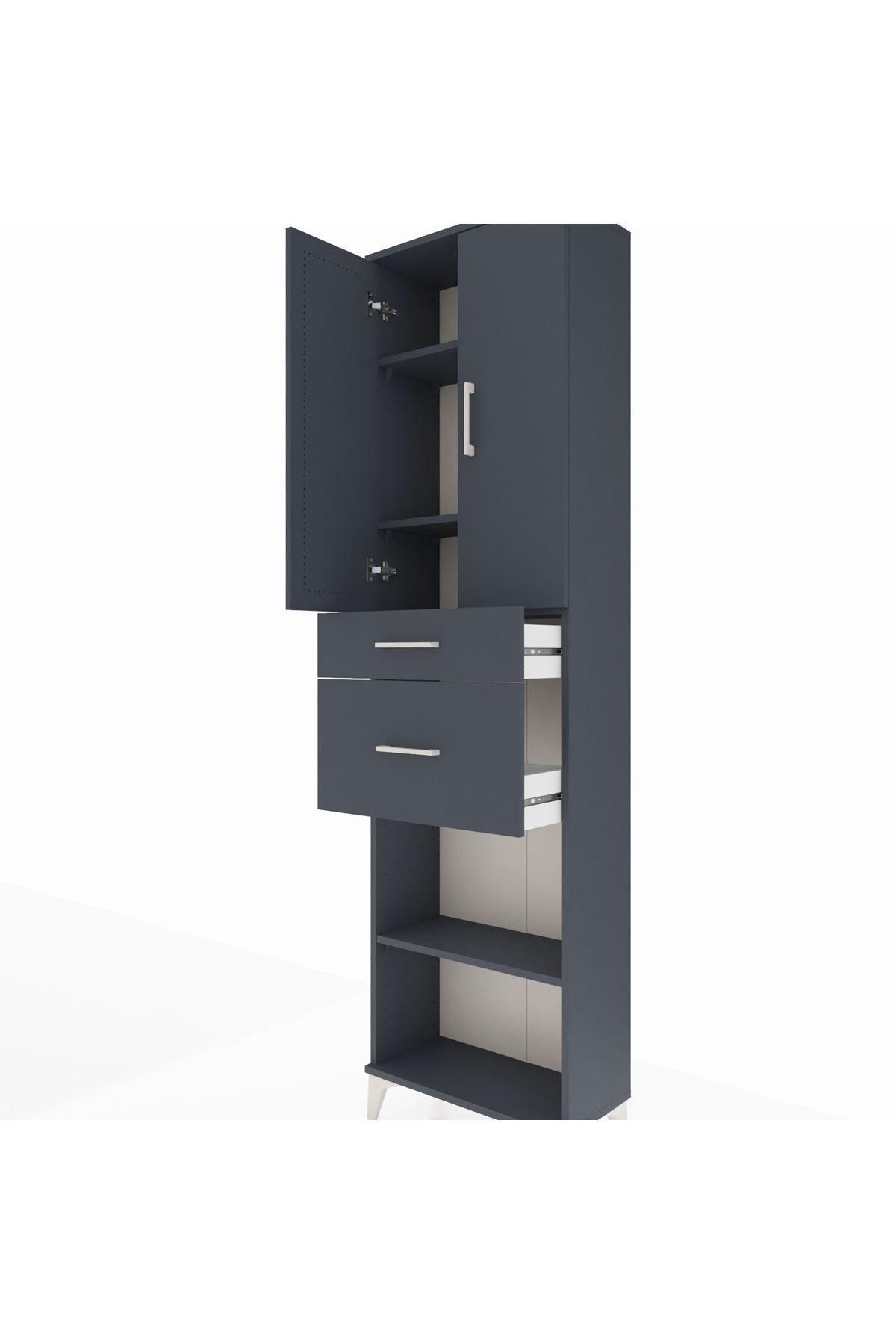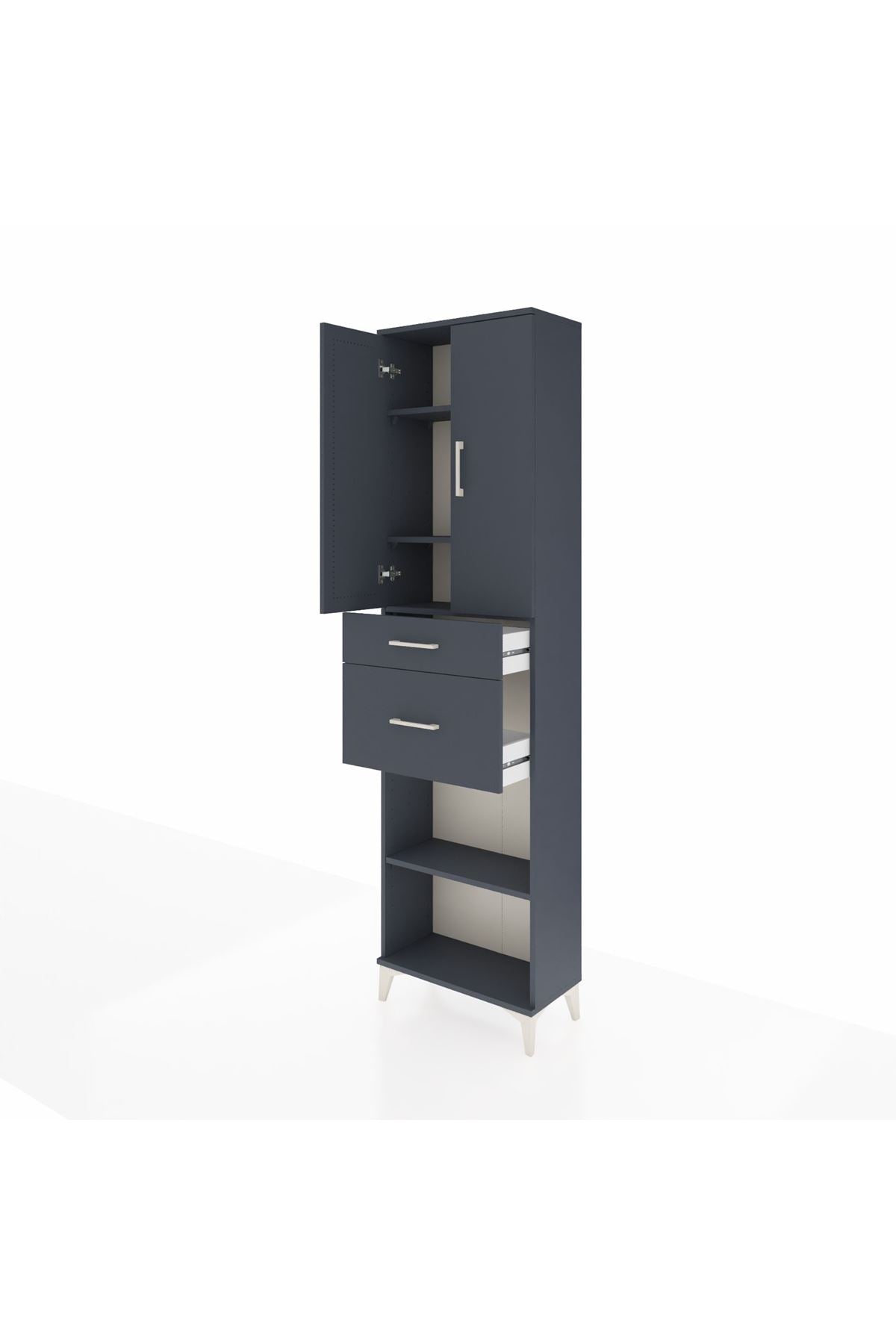 Arges Dolap 4 Raflı 2 Çekmeceli 2 Kapaklı 60x30x221 Antrasit-Antrasit