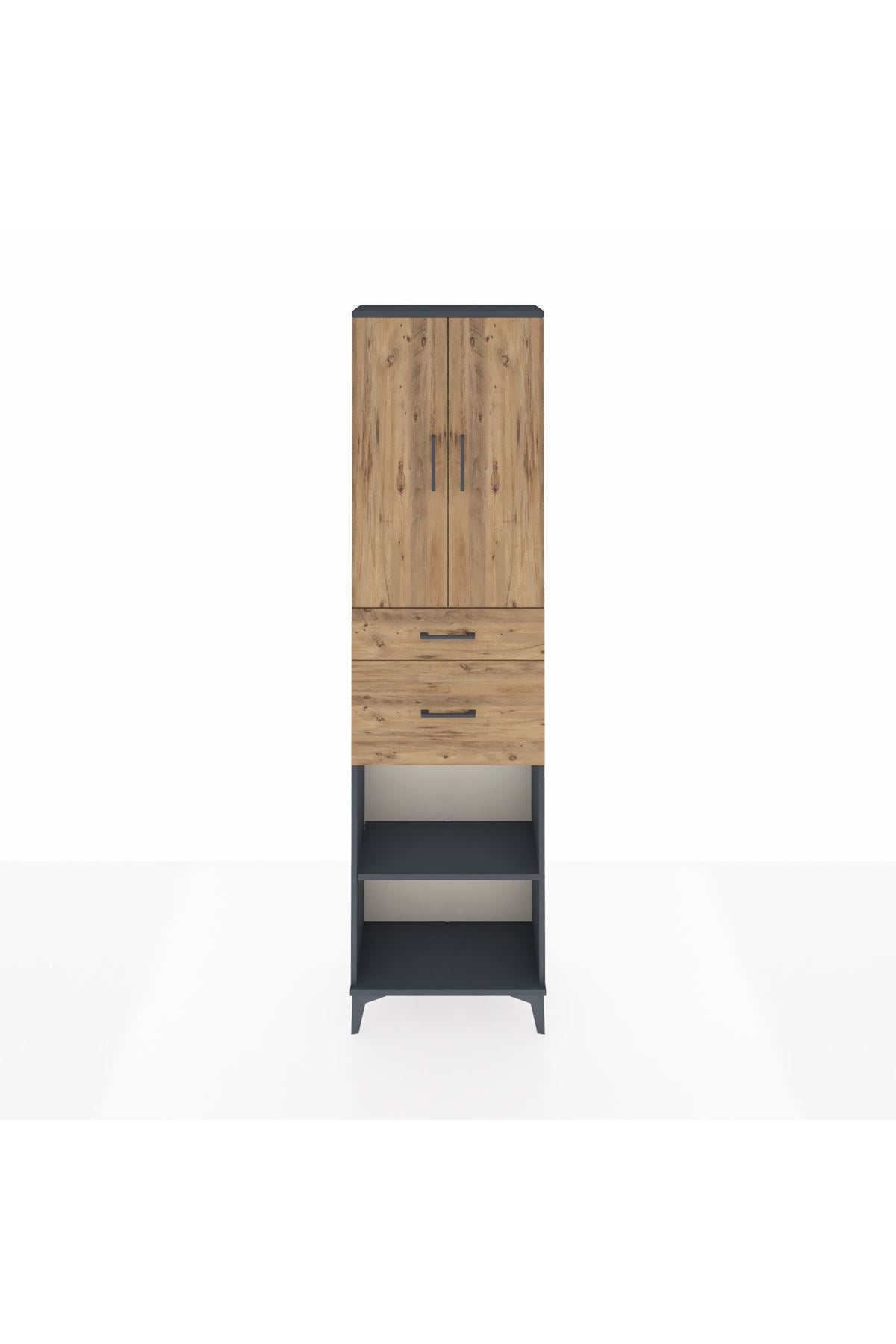 Arges Dolap 4 Raflı 2 Çekmeceli 2 Kapaklı 60x30x221 Antrasit-Çam