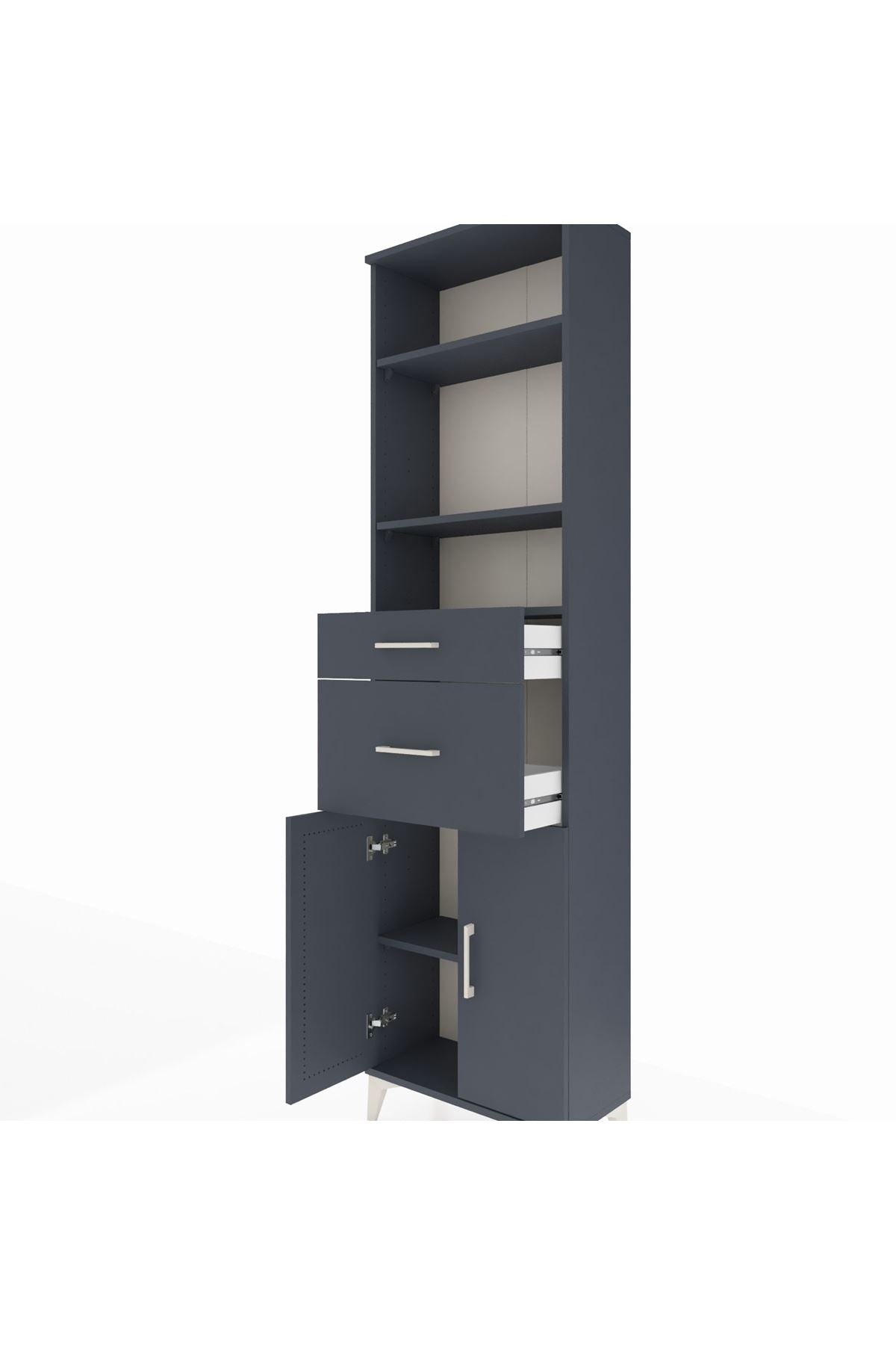 Arges Dolap 4 Raflı 2 Çekmeceli 2 Kapaklı 60x30x221 Antrasit-Antrasit