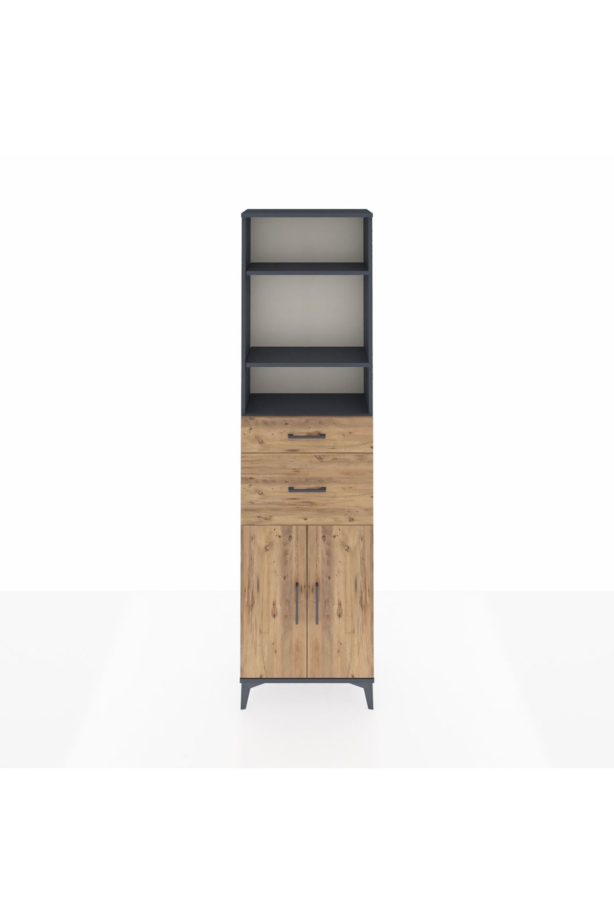 Arges Dolap 4 Raflı 2 Çekmeceli 2 Kapaklı 60x30x221 Antrasit-Çam