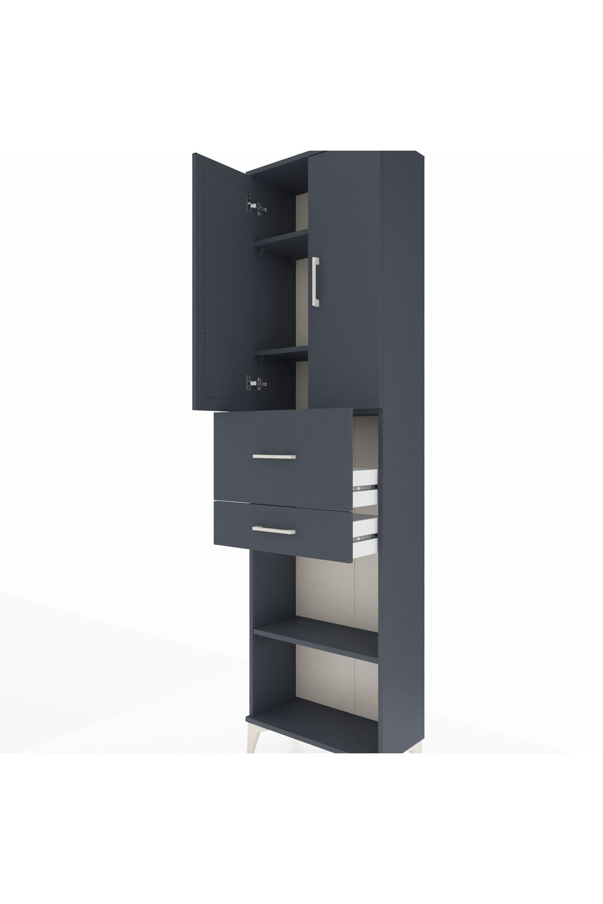Arges Dolap 4 Raflı 2 Çekmeceli 2 Kapaklı 60x30x221 Antrasit-Antrasit