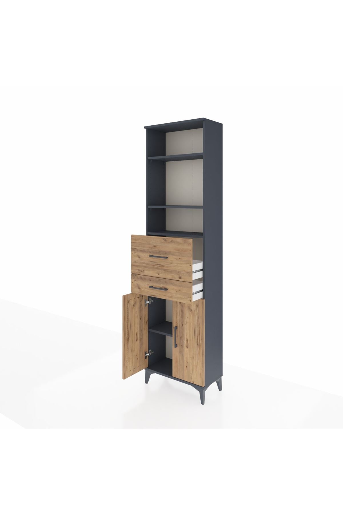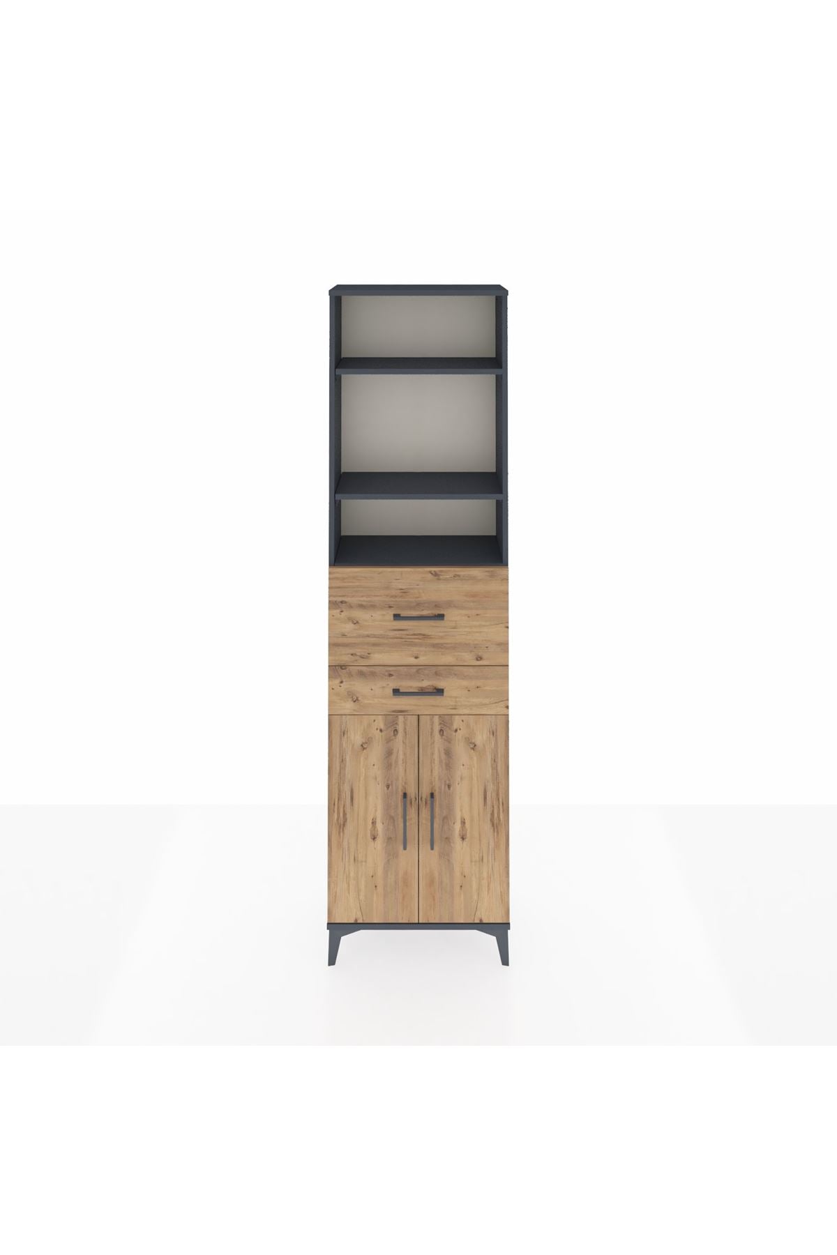 Arges Dolap 4 Raflı 2 Çekmeceli 2 Kapaklı 60x30x221 Antrasit-Çam