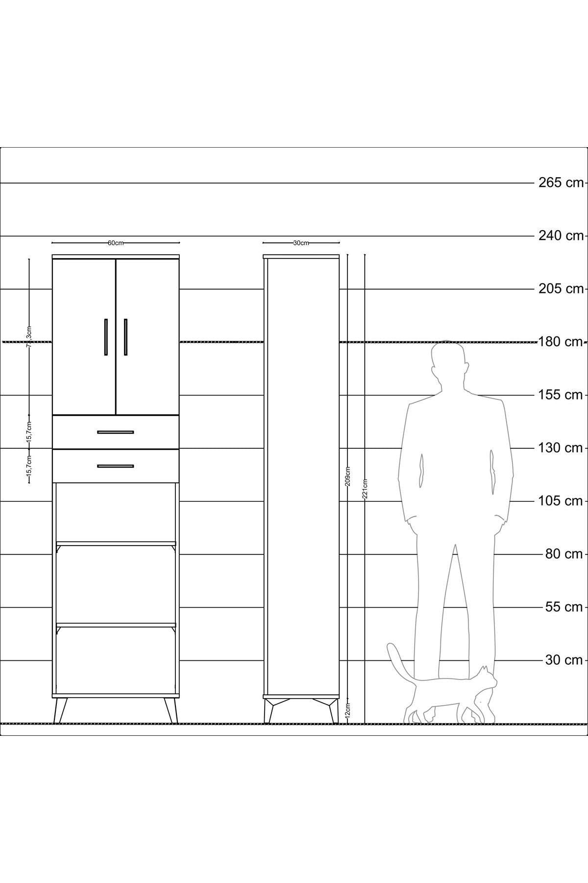Arges Dolap 4 Raflı 2 Çekmeceli 2 Kapaklı 60x30x221 Antrasit-Aytaşı