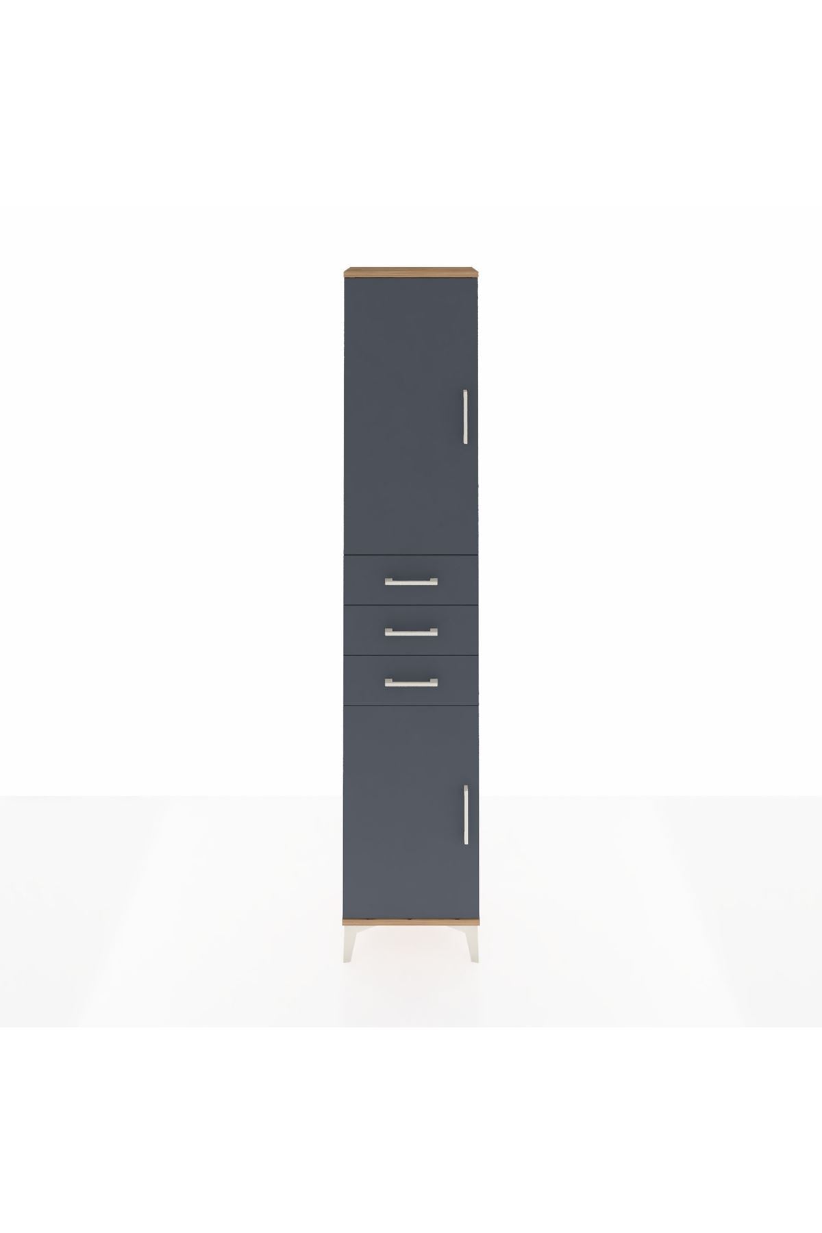 Arges Dolap 4 Raflı 3 Çekmeceli 2 Kapaklı 44x30x221 Çam-Antrasit