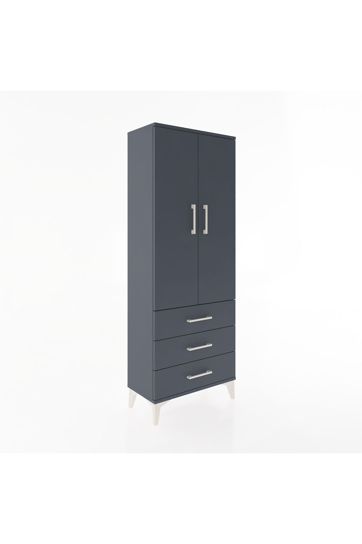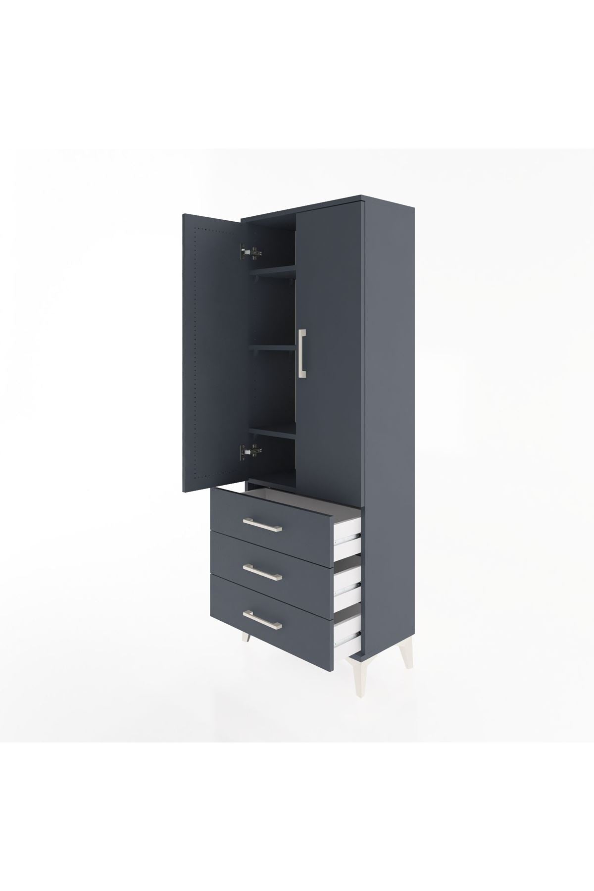 Arges Dolap 4 Raflı 3 Çekmeceli 2 Kapaklı 60x30x163 Antrasit-Antrasit