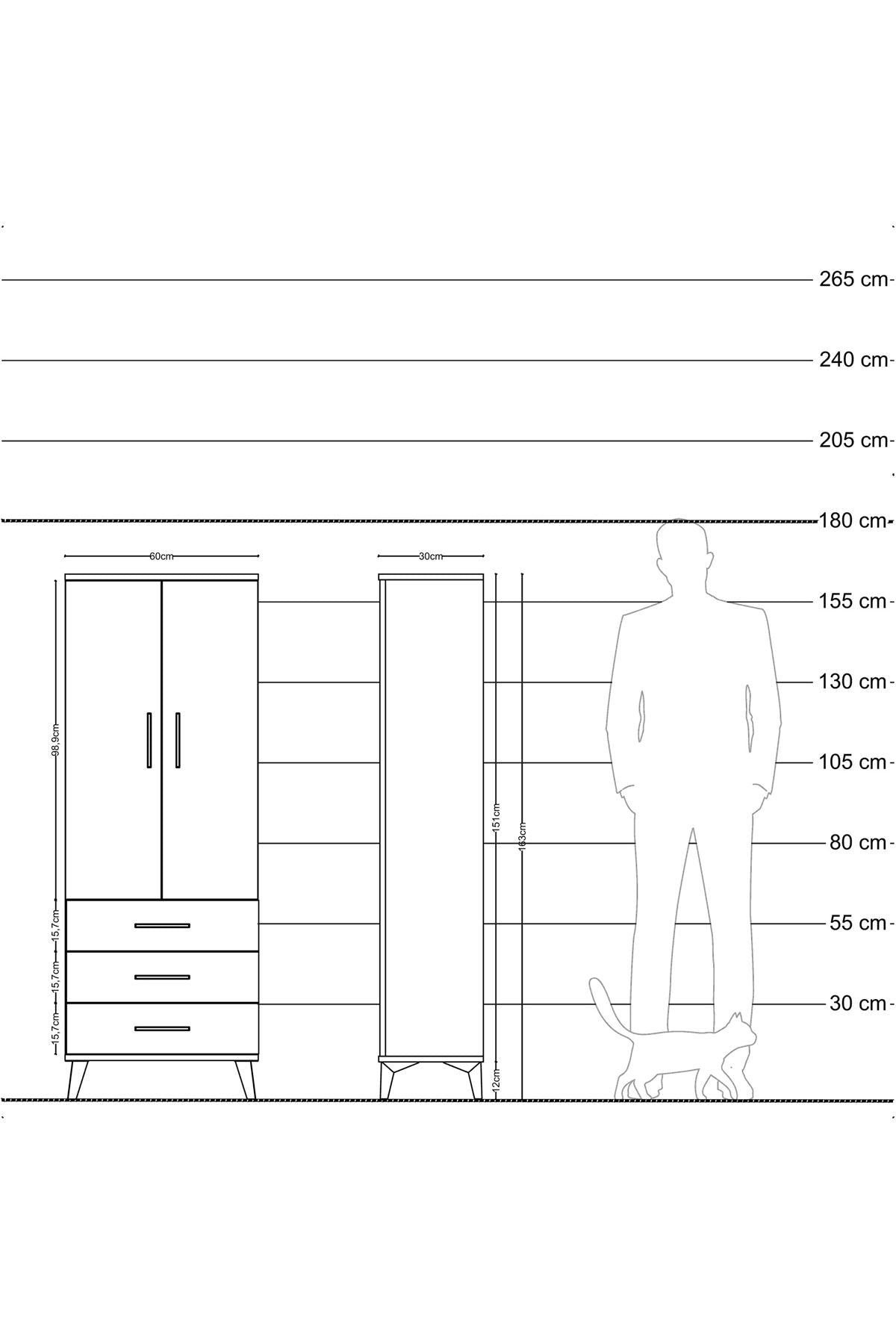 Arges Dolap 4 Raflı 3 Çekmeceli 2 Kapaklı 60x30x163 Aytaşı-Antrasit