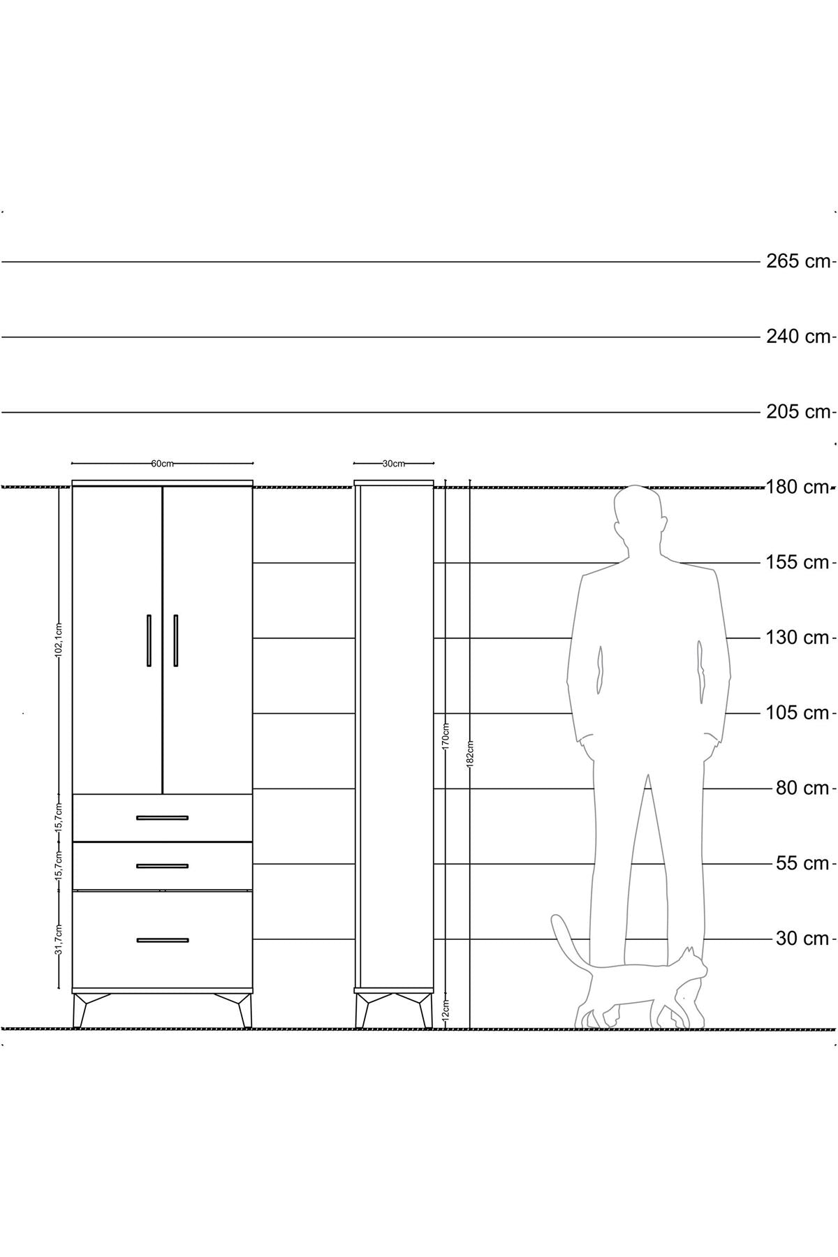 Arges Dolap 4 Raflı 3 Çekmeceli 2 Kapaklı 60x30x182 Antrasit-Aytaşı
