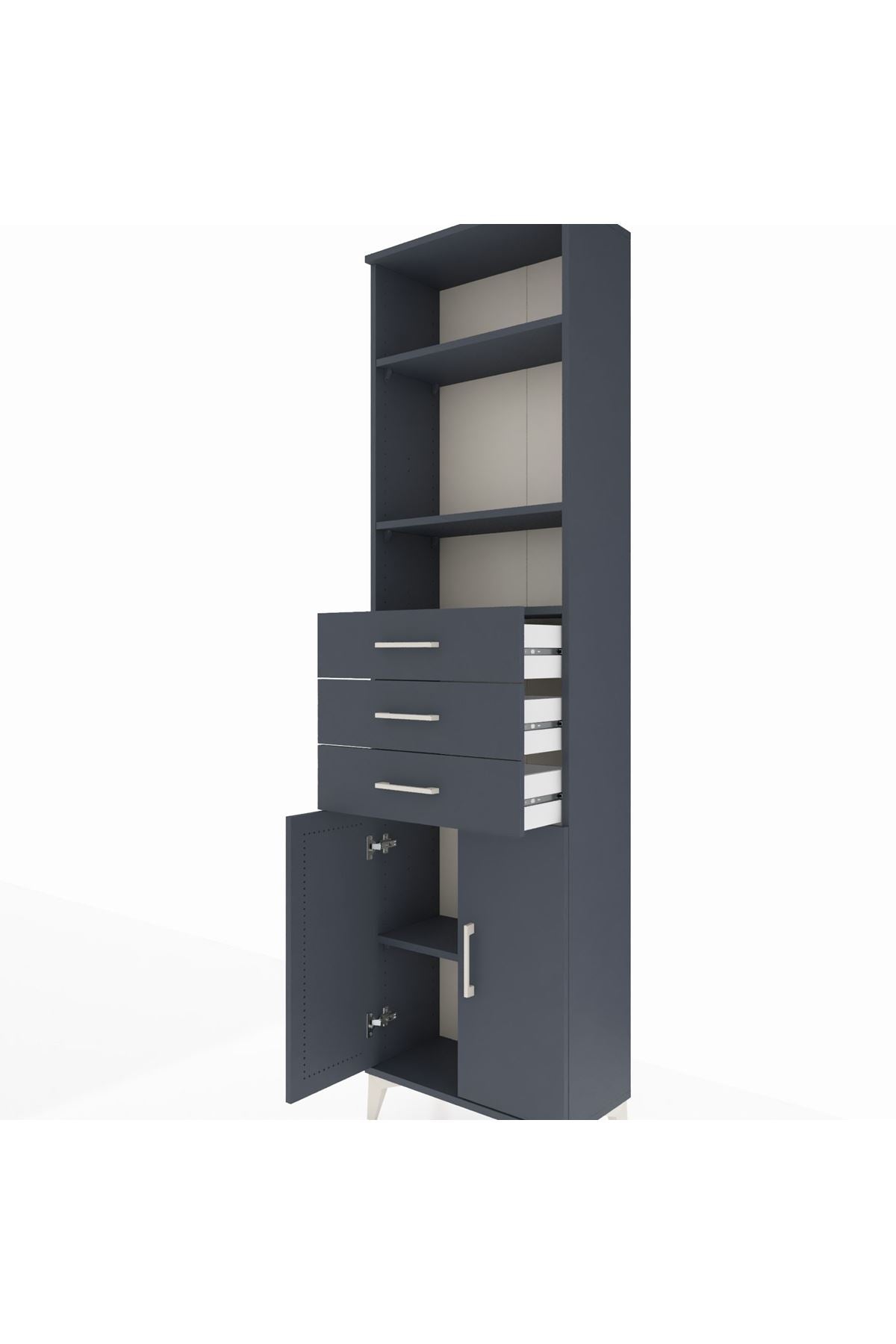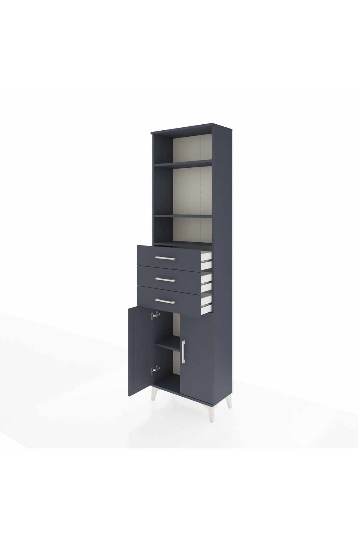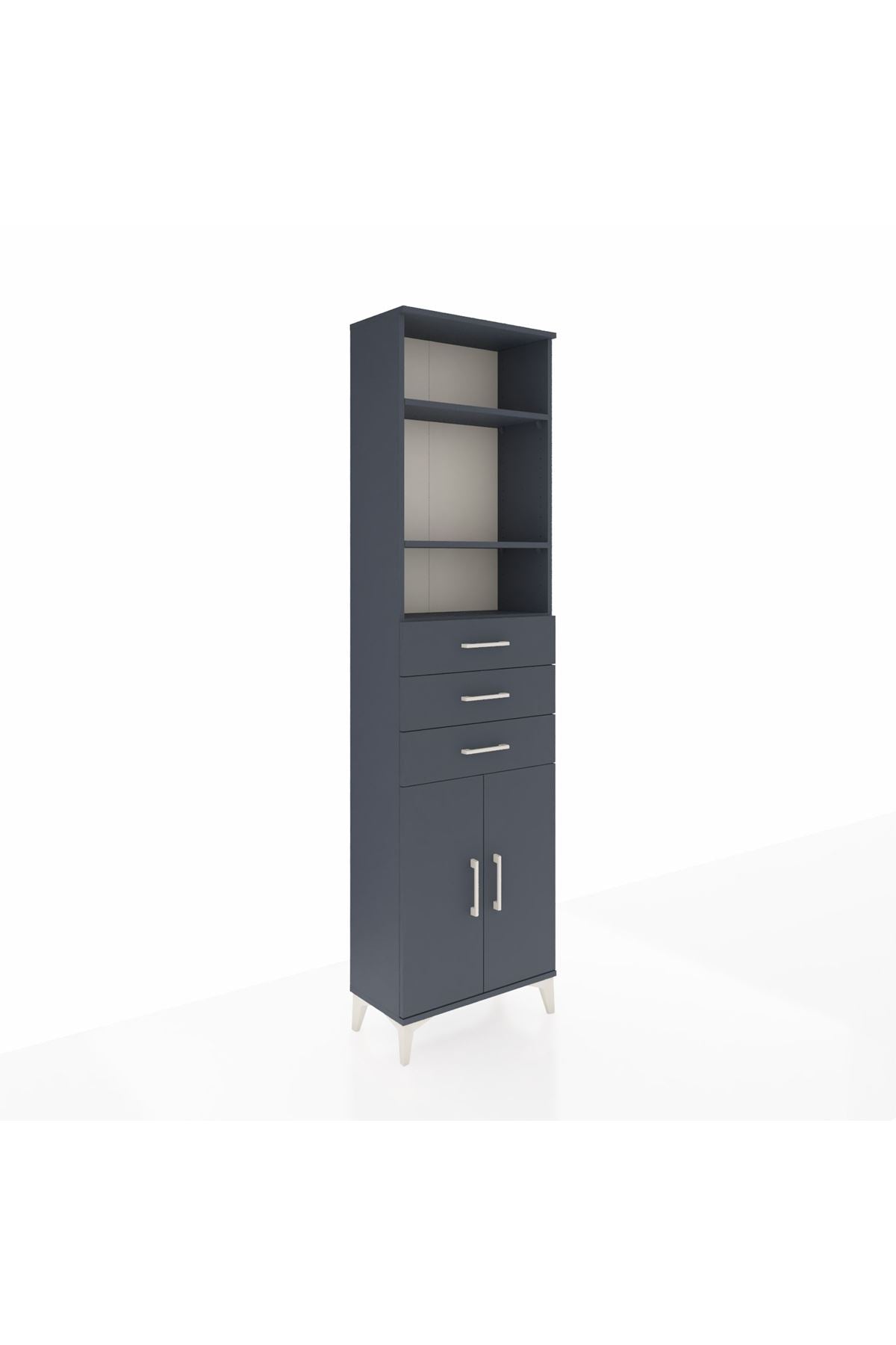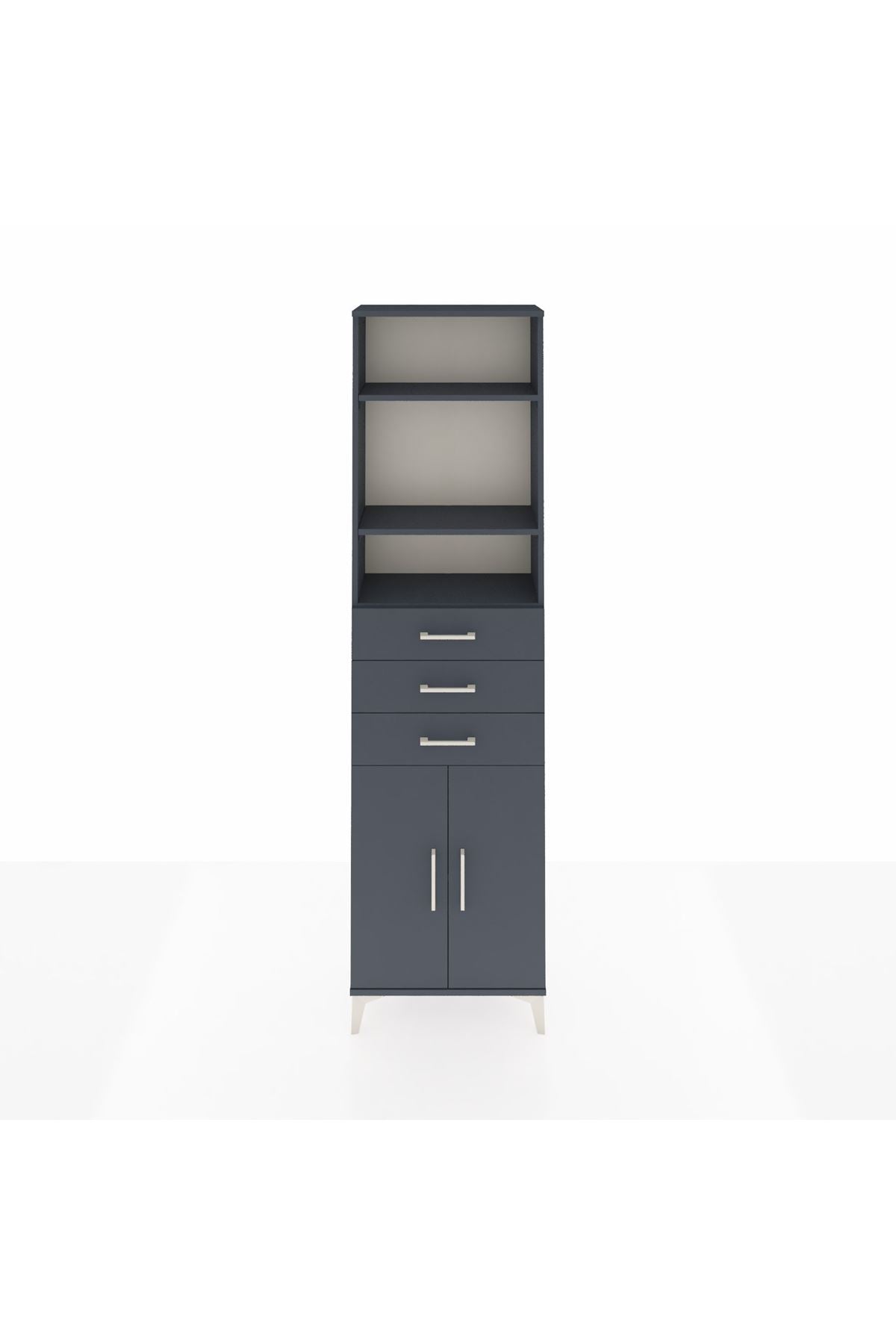 Arges Dolap 4 Raflı 3 Çekmeceli 2 Kapaklı 60x30x221 Antrasit-Antrasit