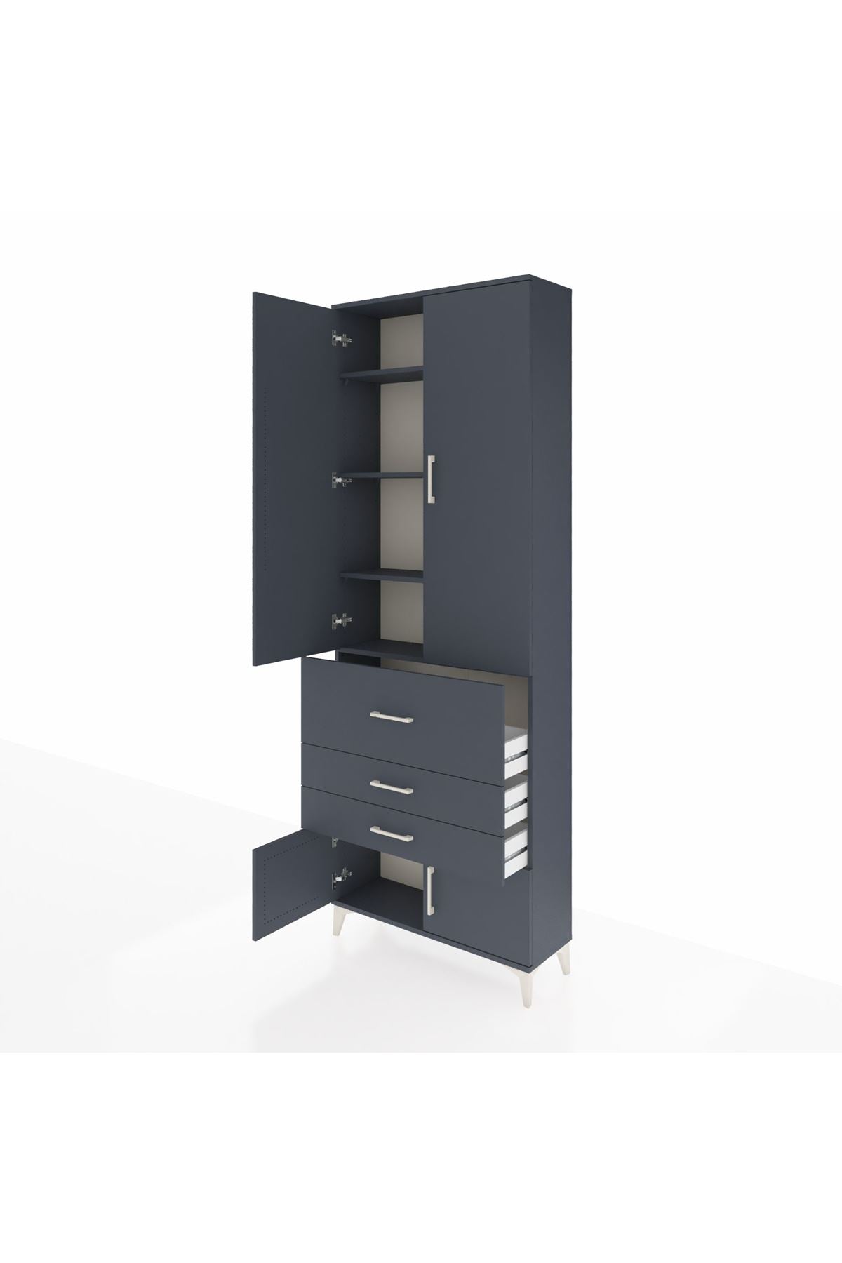 Arges Dolap 4 Raflı 3 Çekmeceli 2 Kapaklı 88x30x243 Antrasit-Antrasit