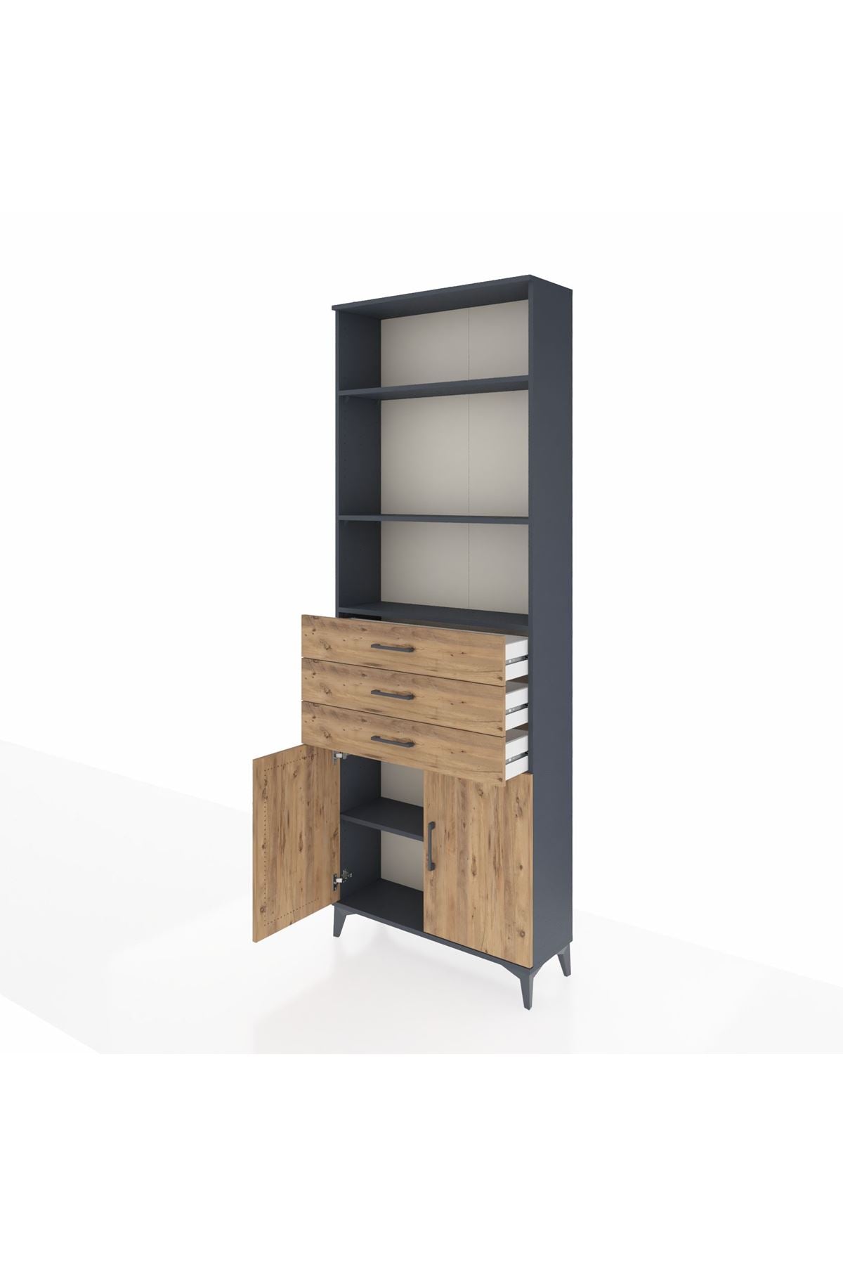 Arges Dolap 4 Raflı 3 Çekmeceli 2 Kapaklı 88x30x243 Antrasit-Çam