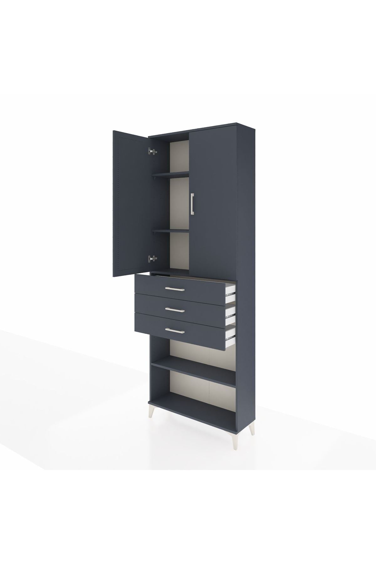 Arges Dolap 4 Raflı 3 Çekmeceli 2 Kapaklı 88x30x243 Antrasit-Antrasit