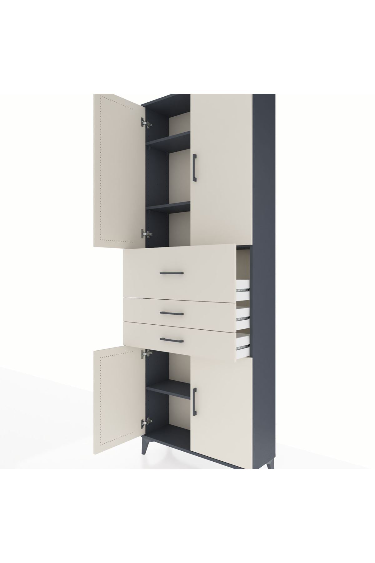 Arges Dolap 4 Raflı 3 Çekmeceli 4 Kapaklı 88x30x243 Antrasit-Aytaşı