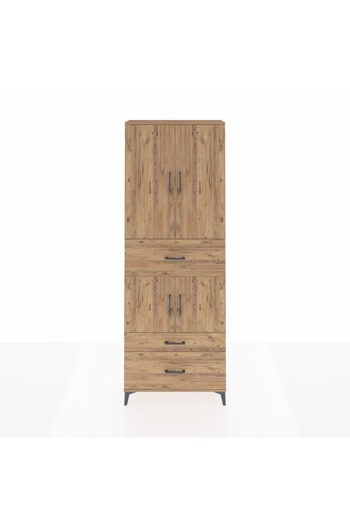 Arges Dolap 4 Raflı 3 Çekmeceli 4 Kapaklı 88x30x243 Çam-Çam