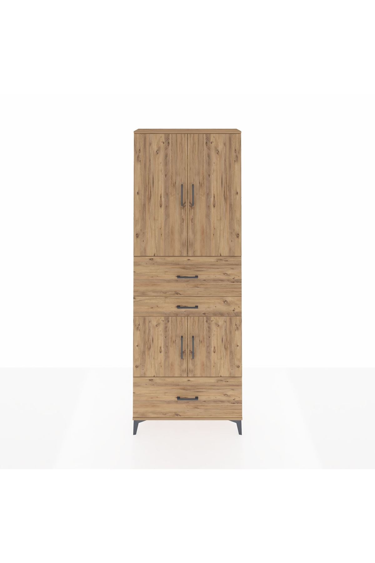Arges Dolap 4 Raflı 3 Çekmeceli 4 Kapaklı 88x30x243 Çam-Çam