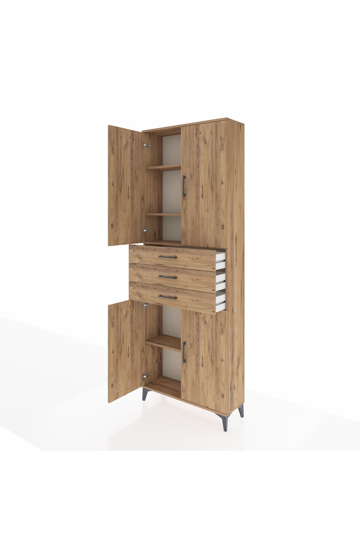 Arges Dolap 4 Raflı 3 Çekmeceli 4 Kapaklı 88x30x243 Çam-Çam