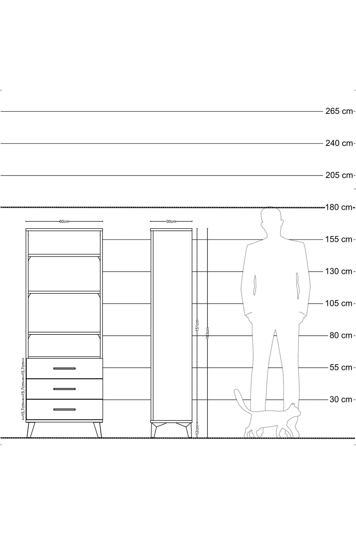 Genişlik: 60 cm, Derinlik: 30 cm, Yükseklik: 163 cm