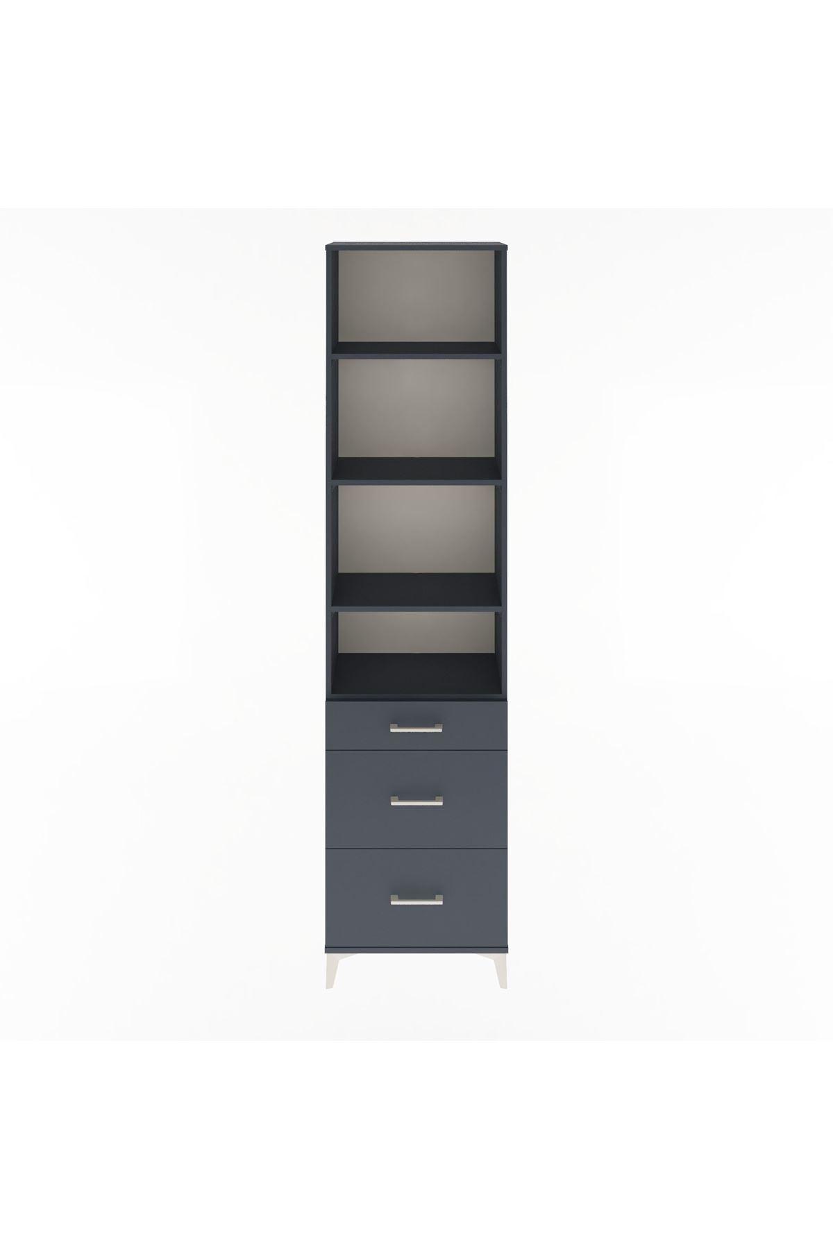 Arges Dolap 4 Raflı 3 Çekmeceli 60x30x243 Antrasit-Antrasit