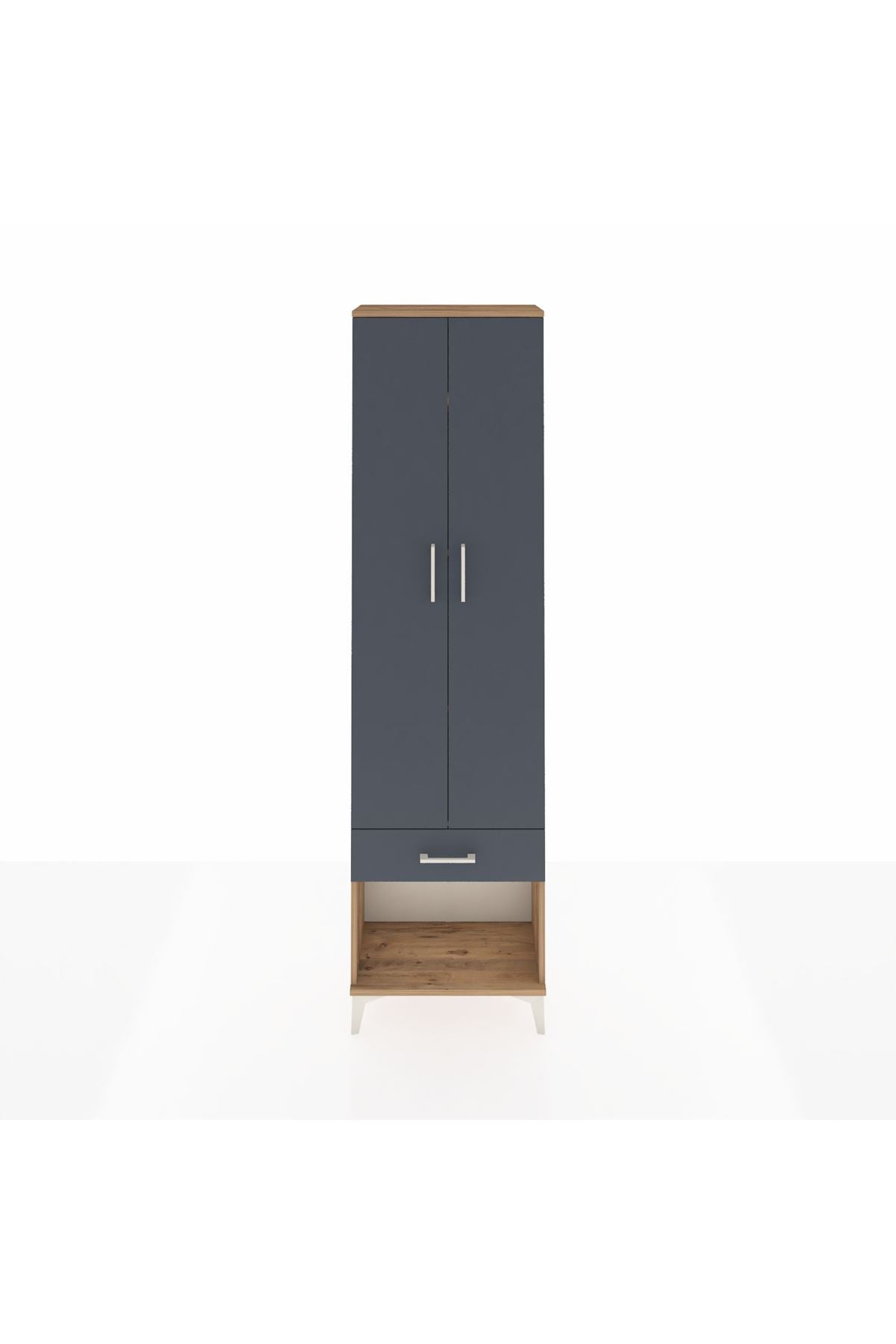 Arges Dolap 4 Raflı Tek Çekmeceli 2 Kapaklı 60x30x221 Çam-Antrasit