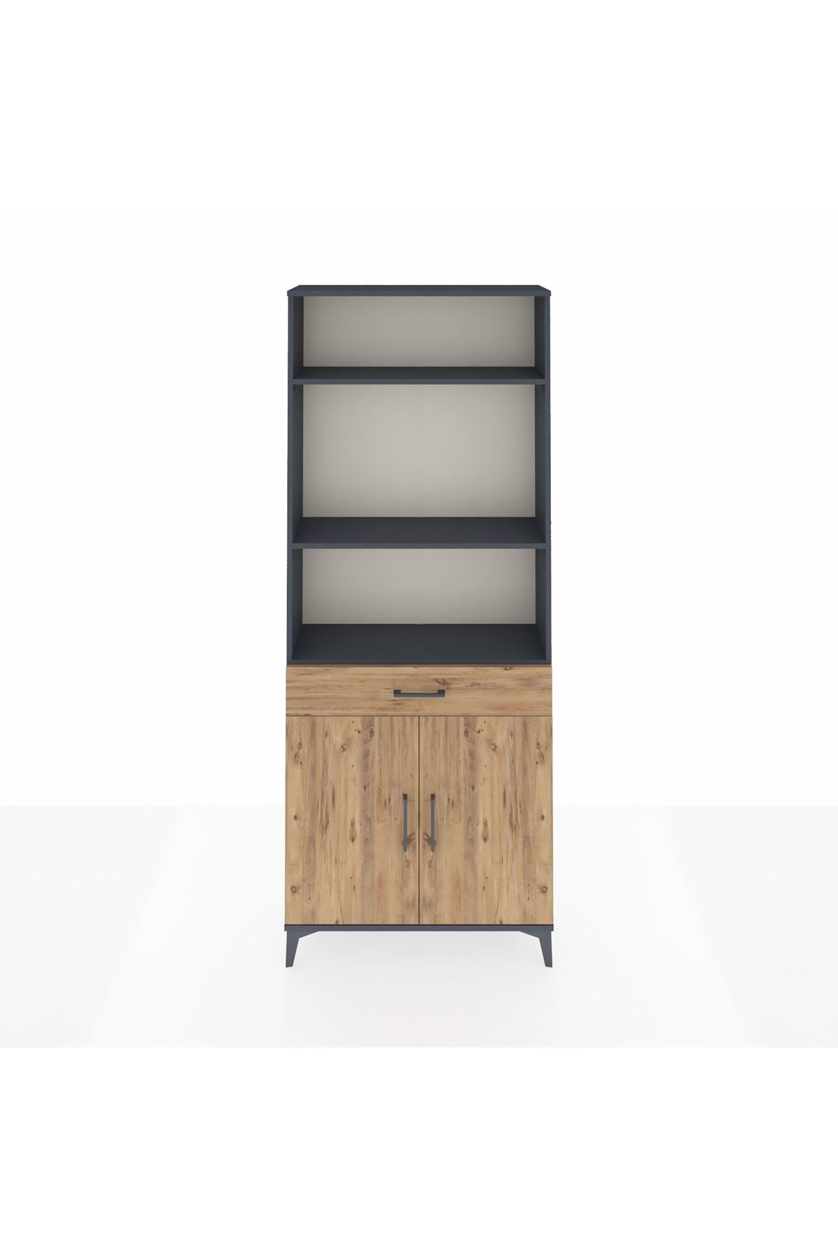 Arges Dolap 4 Raflı Tek Çekmeceli 2 Kapaklı 88x30x221 Antrasit-Çam