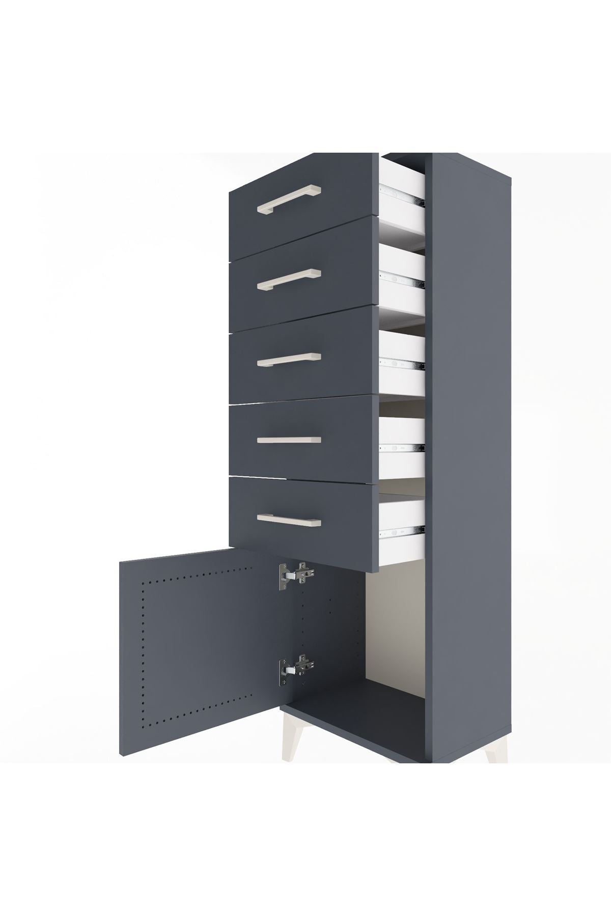 Arges Dolap 5 Çekmeceli Tek Kapaklı 44x30x134 Antrasit-Antrasit