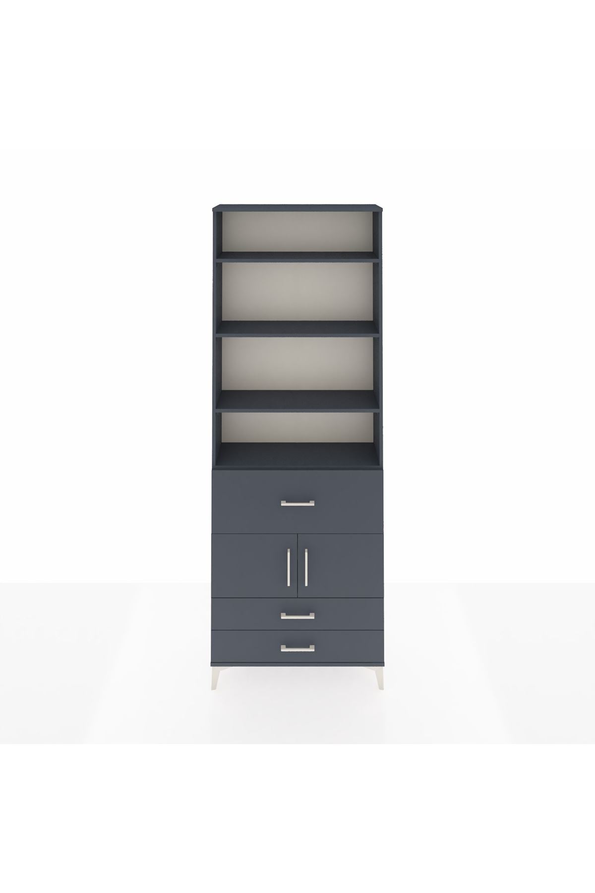 Arges Dolap 5 Raflı 3 Çekmeceli 2 Kapaklı 88x30x243 Antrasit-Antrasit