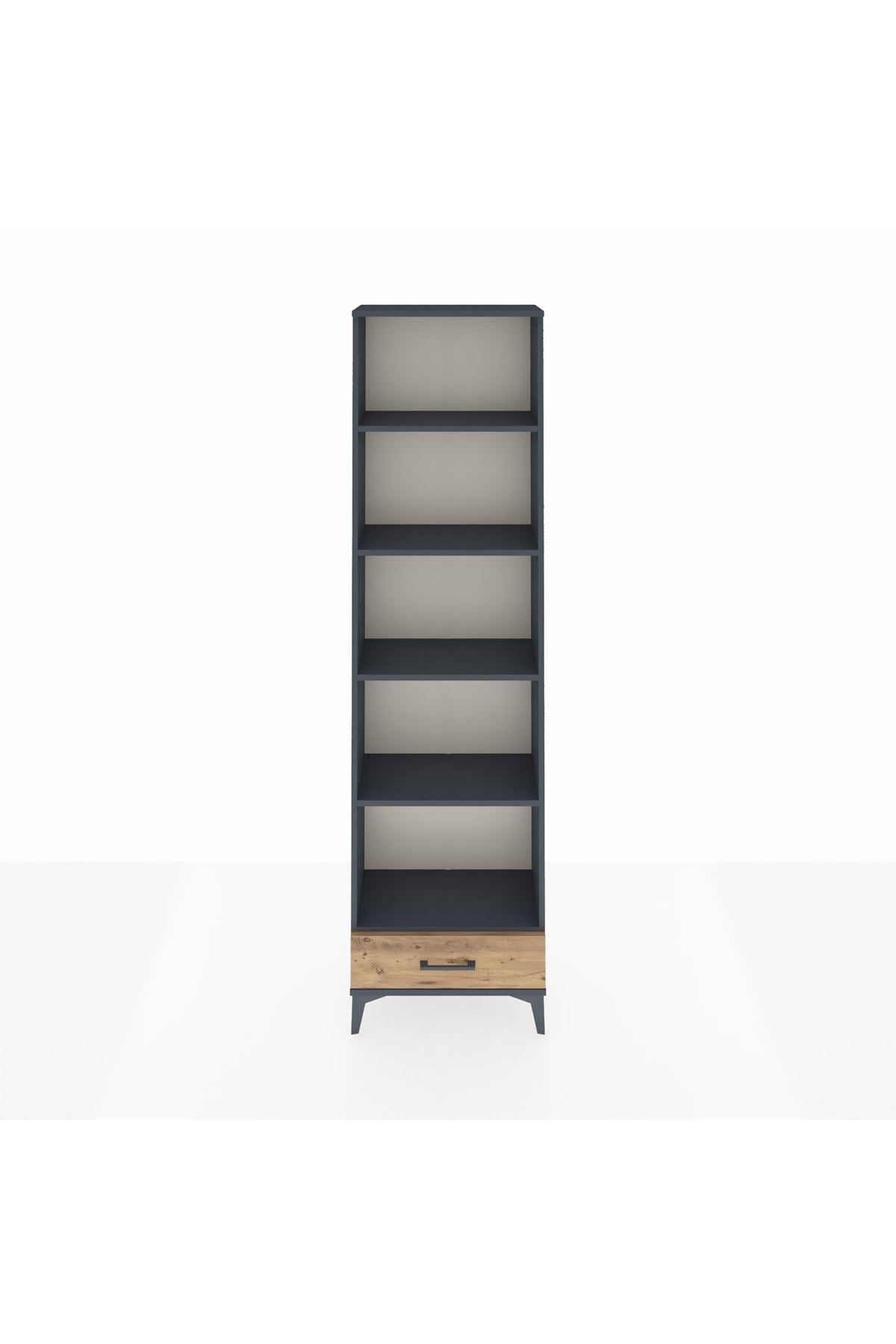 Arges Dolap 5 Raflı Tek Çekmeceli 60x30x221 Antrasit-Çam