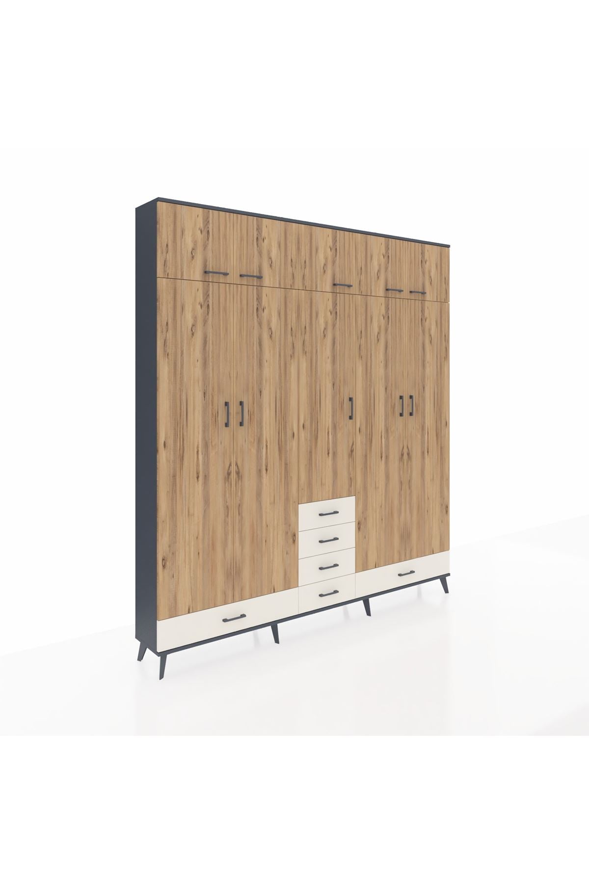 Arges Dolap 6 Raflı 6 Çekmeceli 4 Askılı 220x30x243 Antrasit-Çam/Aytaşı
