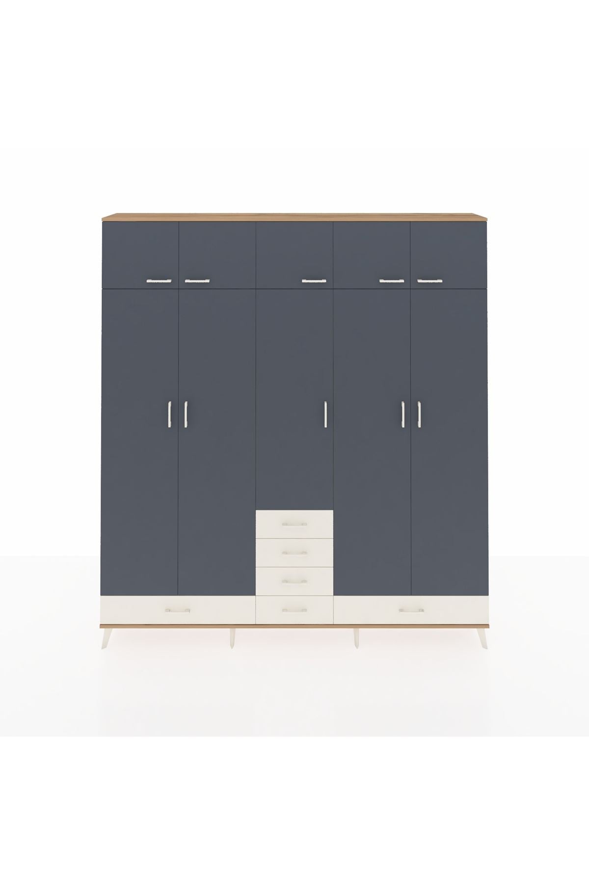 Arges Dolap 6 Raflı 6 Çekmeceli 4 Askılı 220x30x243 Çam-Antrasit/Aytaşı