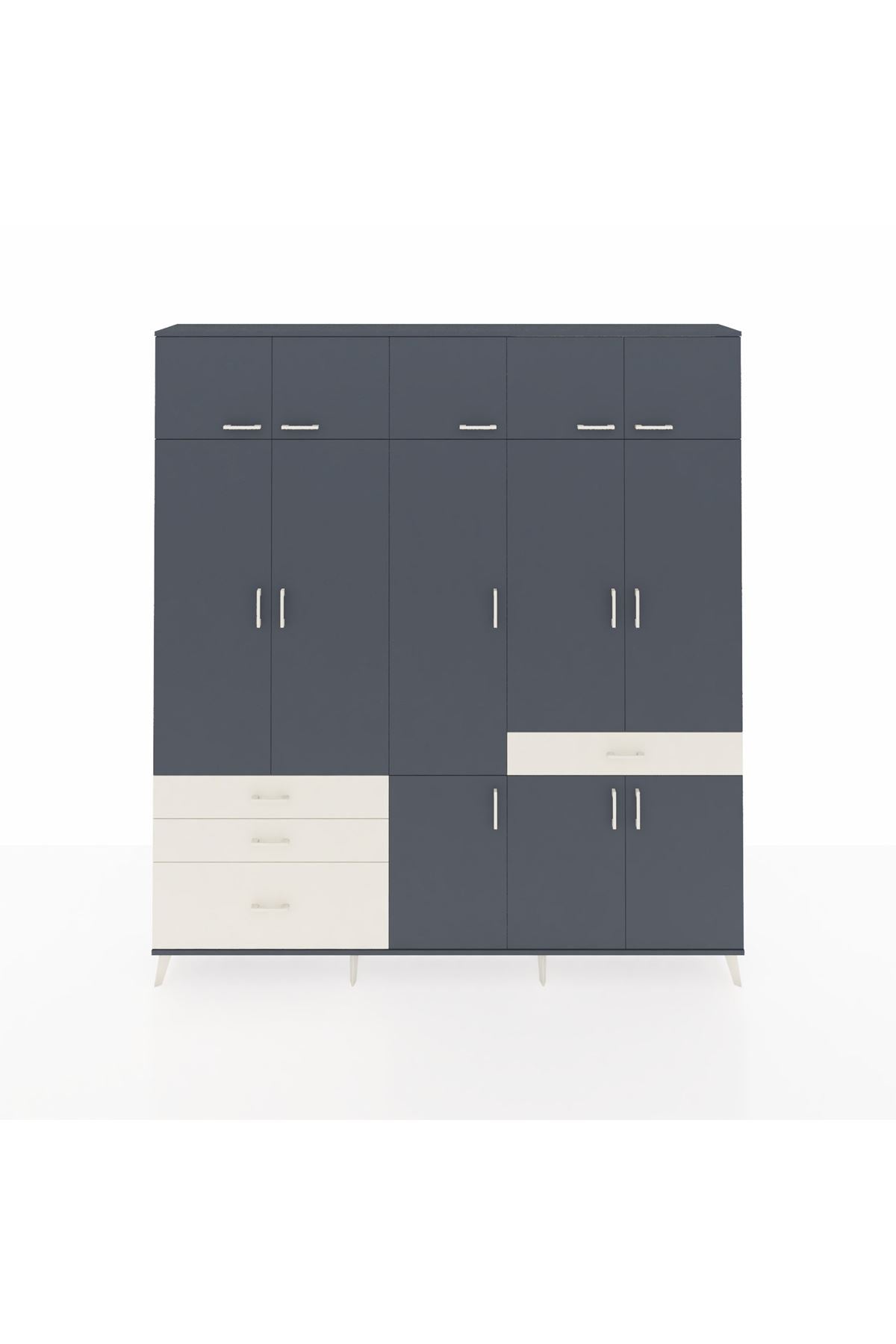 Arges Dolap 8 Raflı 4 Çekmeceli 3 Askılı 220x30x243 Antrasit-Antrasit/Aytaşı