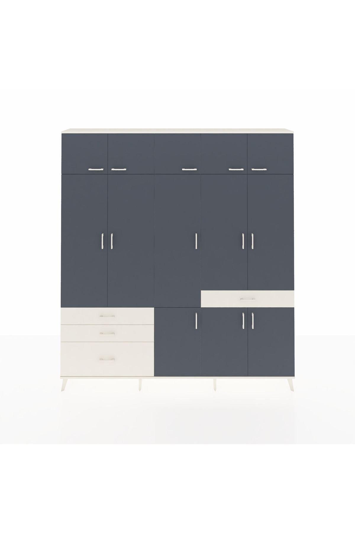 Arges Dolap 8 Raflı 4 Çekmeceli 3 Askılı 220x30x243 Aytaşı-Antrasit/Aytaşı
