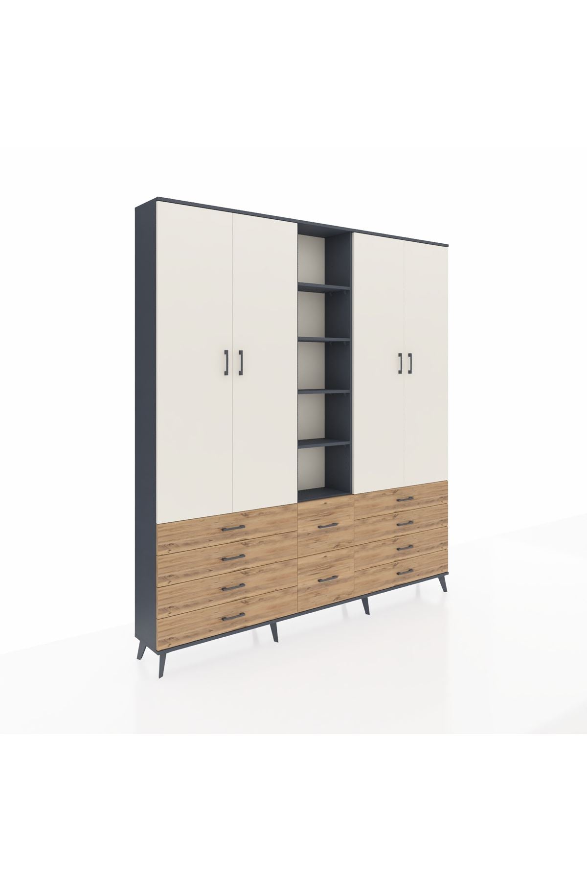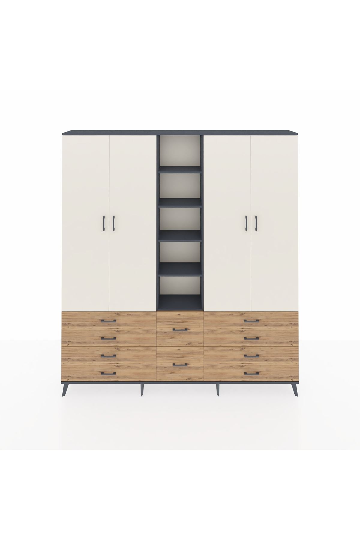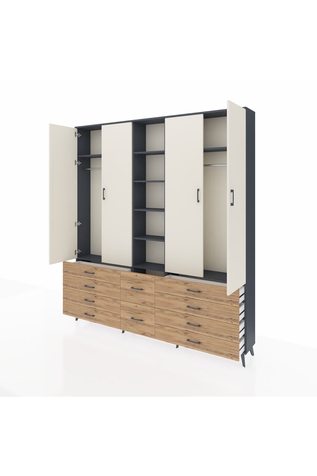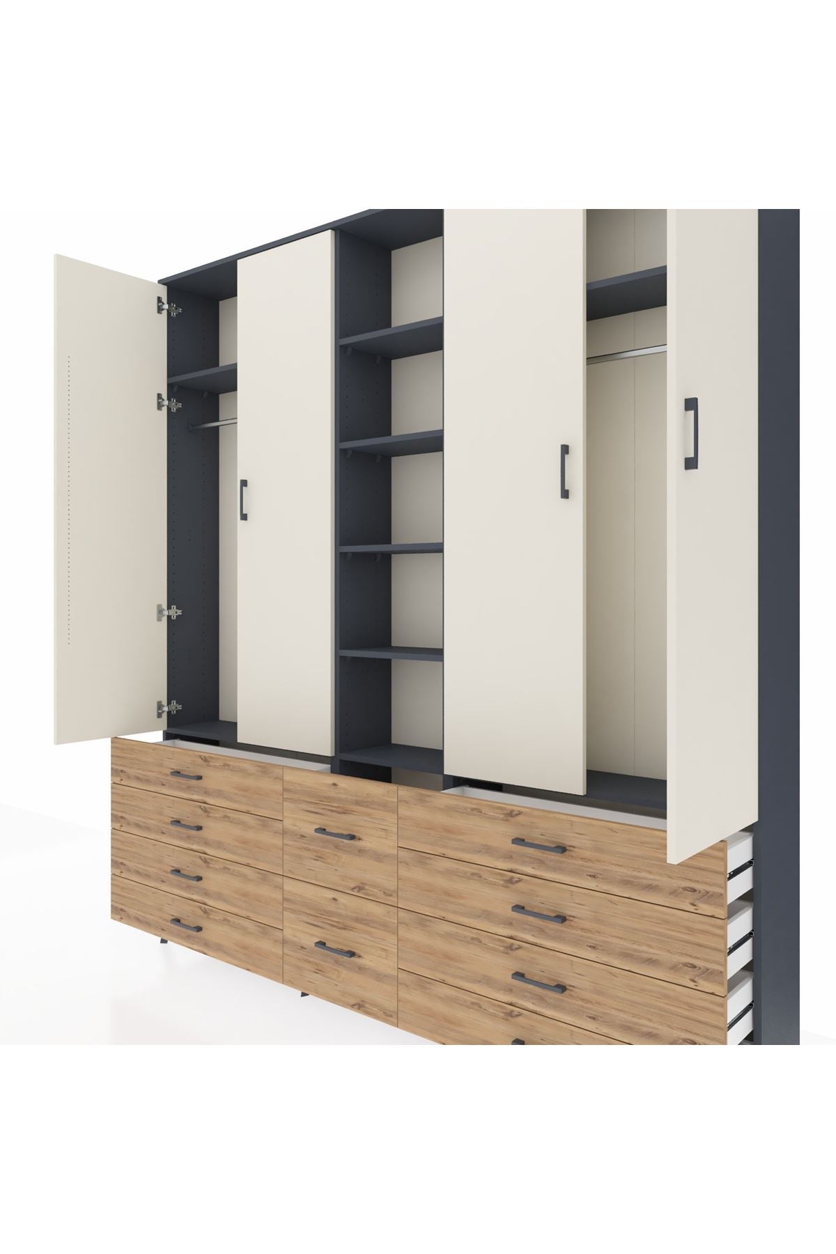 Arges Dolap 9 Raflı 10 Çekmeceli 2 Askılı 220x30x243 Antrasit-Aytaşı/Çam