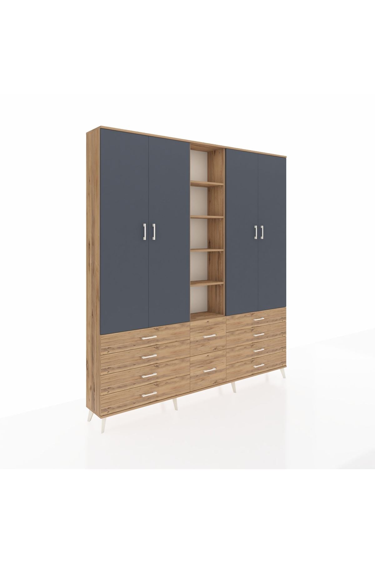 Arges Dolap 9 Raflı 10 Çekmeceli 2 Askılı 220x30x243 Çam-Antrasit/Çam
